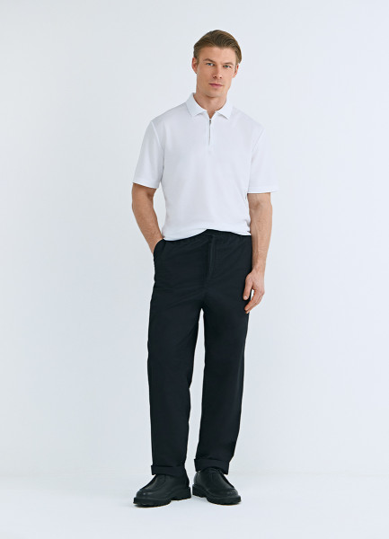 Поло из техноткани с воротником на молнии, Черный