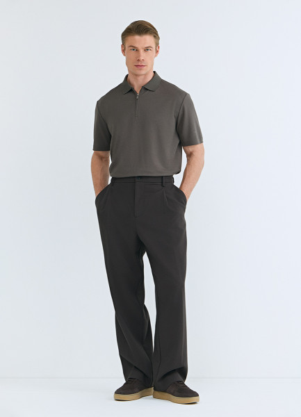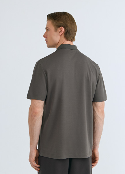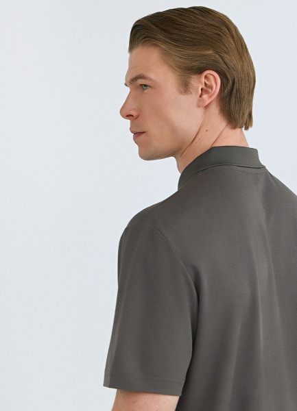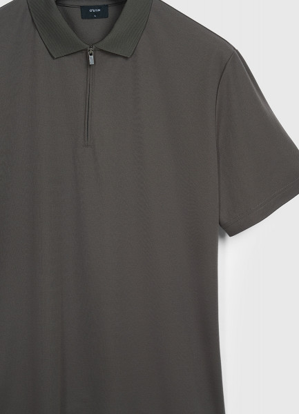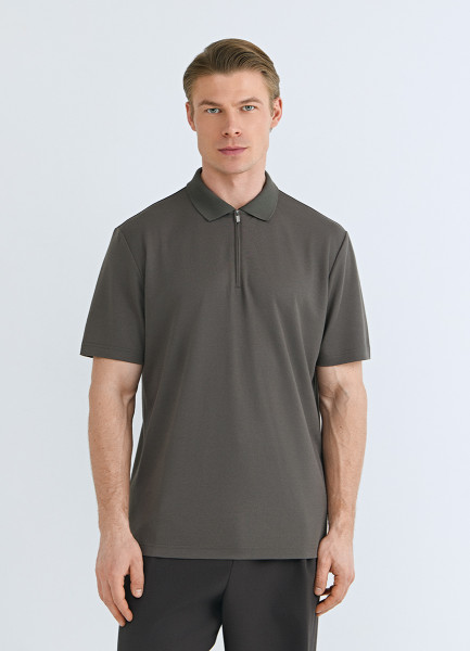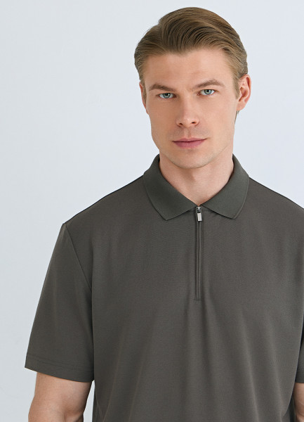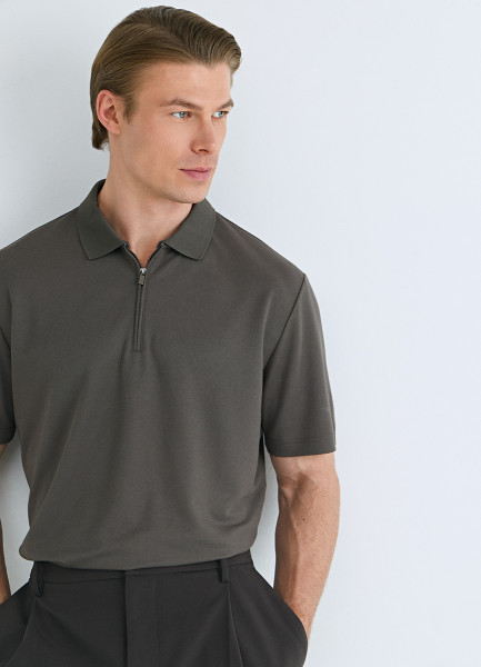 Поло из техноткани с воротником на молнии, Коричневый