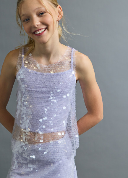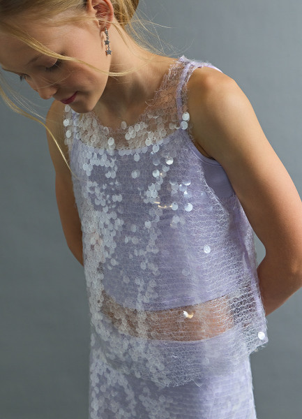 Сетчатый лонгслив в клетку для девочек, Фиолетовый
