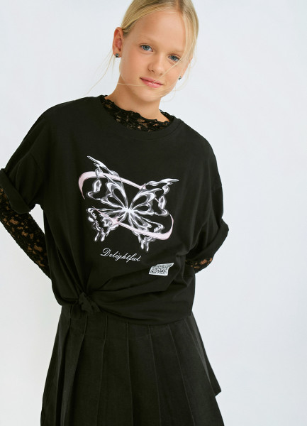 Футболка с принтом для девочек, Черный