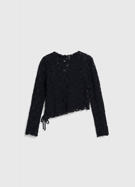 Кружевной лонгслив с завязками для девочек, Черный