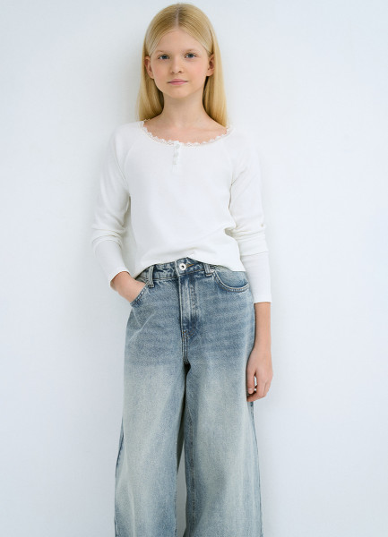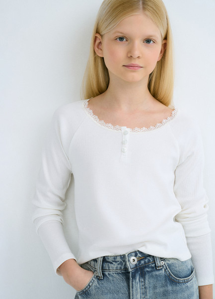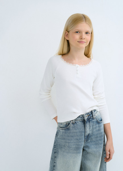 Лонгслив в рубчик для девочек, Белый