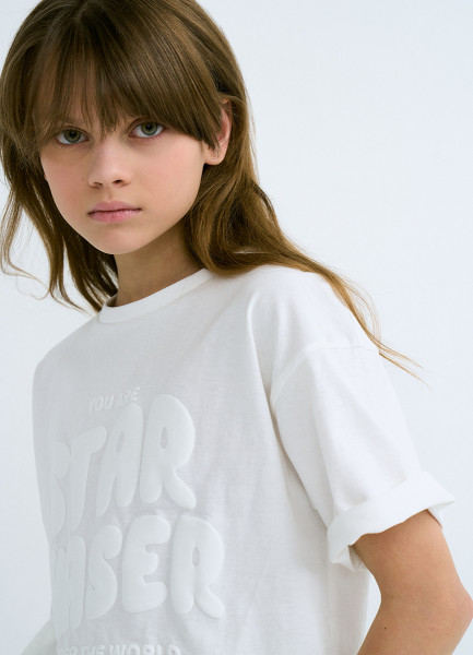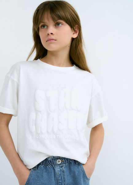 Футболка с объёмным принтом для девочек, Белый