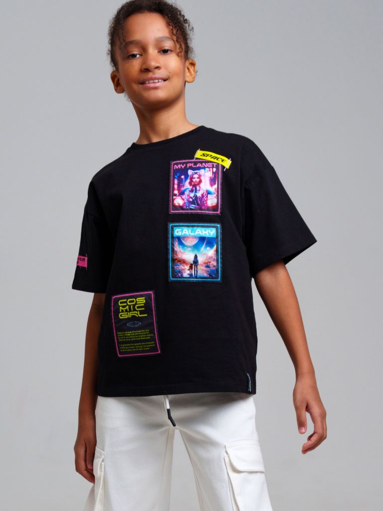 Футболка для девочки подростка. Футболка оверсайз из качественного и приятного на ощупь трикотажа джерси с высоким содержанием хлопка 95%. Благодаря наличию эластана в составе ткани изделие проще в уходе и держит форму. Модель выполнена из качественного и приятного на ощупь трикотажа.
