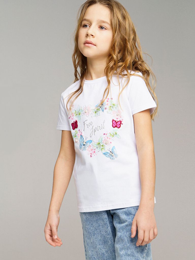 Футболка из качественного и приятного на ощупь трикотажа джерси. Высокое содержание хлопка 95%. Благодаря наличию эластана в составе ткани изделие проще в уходе и держит форму. Принт сохраняет первоначальный вид даже после многочисленных стирок.