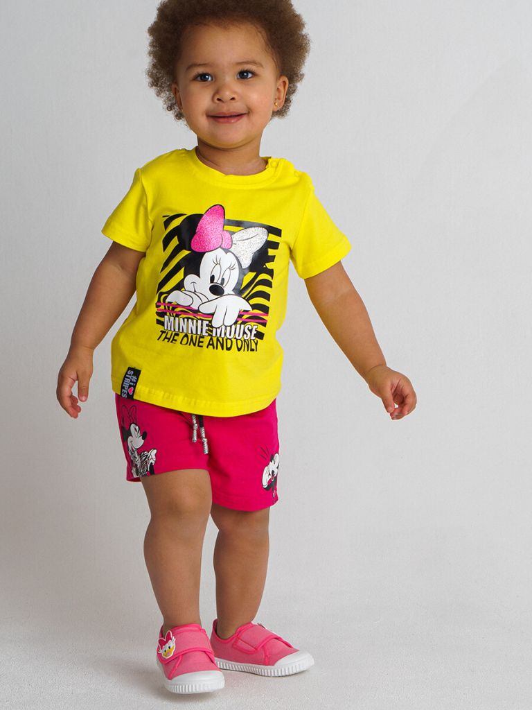 Футболка с принтом Disney из качественного приятного на ощупь трикотажа. Размер изделия на фото - 86, рост модели 86 см. Высокое содержание хлопка 95%. Благодаря наличию эластана в составе ткани, изделие проще в уходе и держит форму. Кнопки на плече.