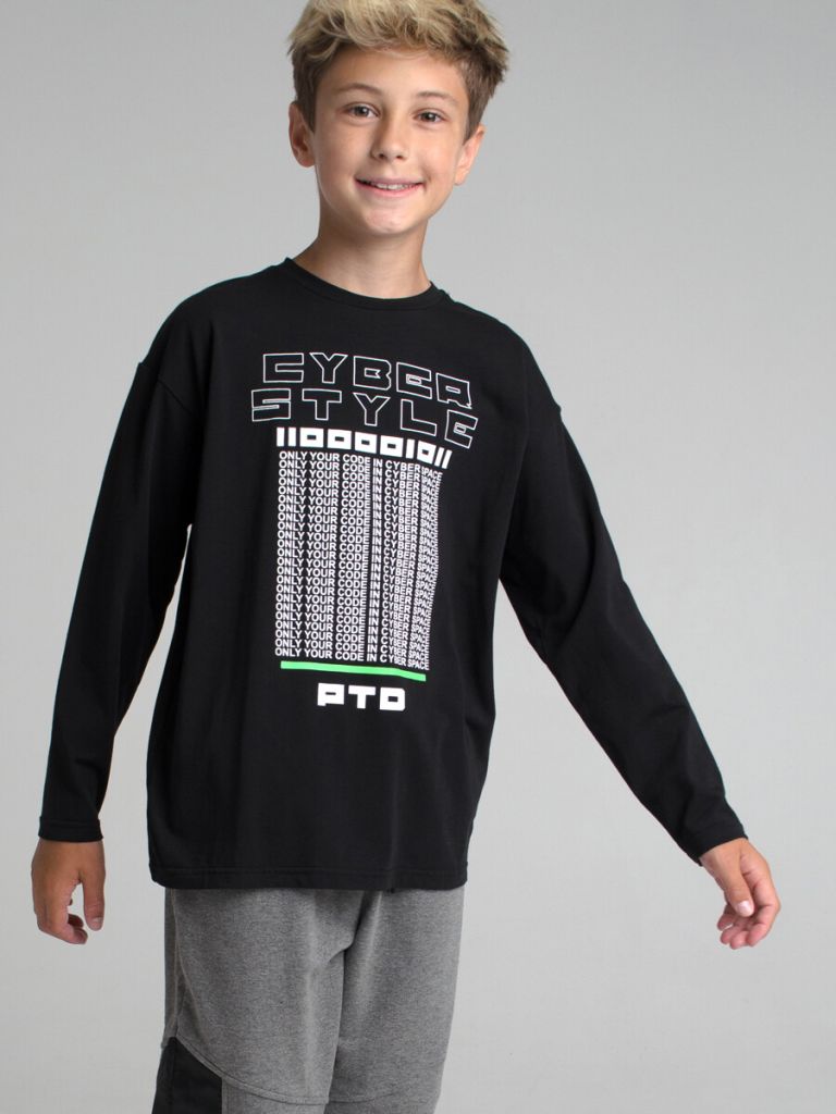 Лонгслив из качественного и приятного на ощупь трикотажа джерси. Высокое содержание хлопка 95%. Благодаря наличию эластана в составе ткани, изделие проще в уходе и держит форму. Принт сохраняет первоначальный вид даже после многочисленных стирок.