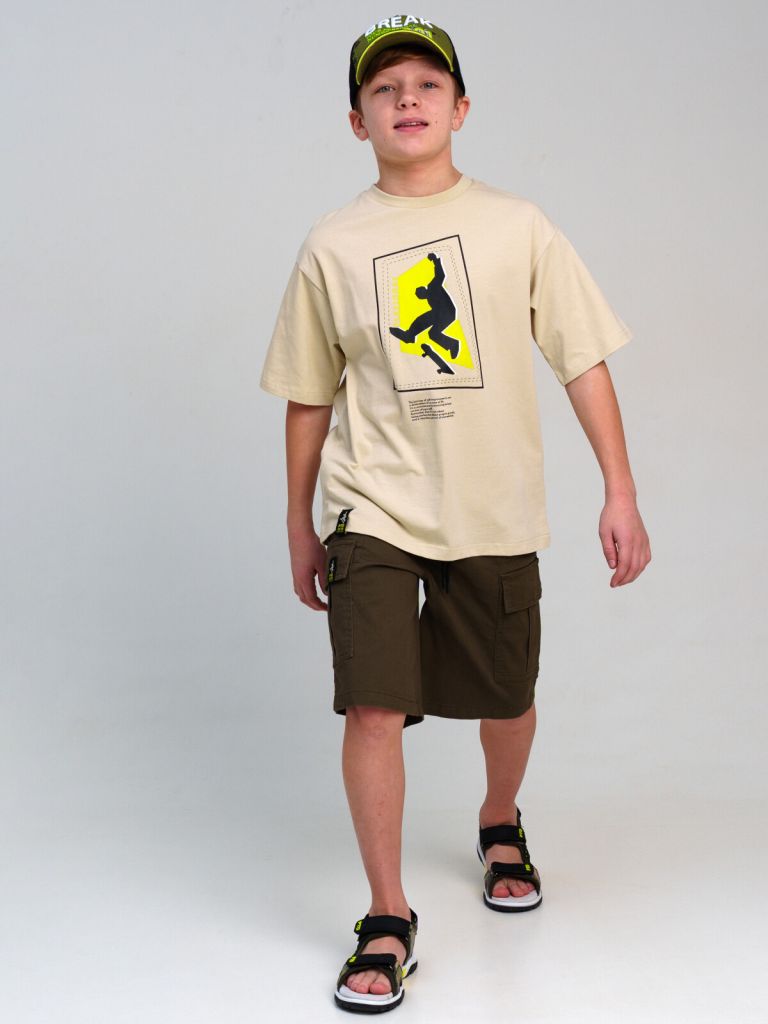 Футболка оверсайз для мальчика подростка. Высокое содержание хлопка. Благодаря наличию эластана в составе ткани изделие держит форму и меньше мнется. Модель выполнена из качественного и приятного на ощупь трикотажа.