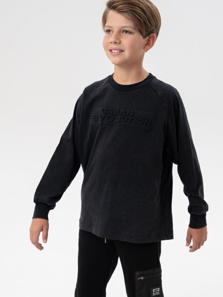 Чёрный лонгслив для мальчика подростка от PlayToday — универсальная футболка с длинными рукавами для школы и повседневных прогулок. Модель выполнена из мягкого хлопкового трикотажа, который дышит, приятен к телу и безопасен для кожи ребёнка. Декор в технике варки придаёт стильный современный вид, а манжеты из риба делают посадку удобной и практичной.