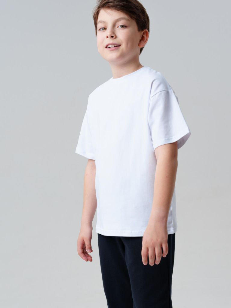 Белая хлопковая футболка оверсайз с коротким рукавом для мальчика подростка от PlayToday — идеальный выбор для школы, уроков физкультуры, спорта и активных прогулок. Современный крой, универсальный цвет и комфортный материал делают её незаменимой частью гардероба.