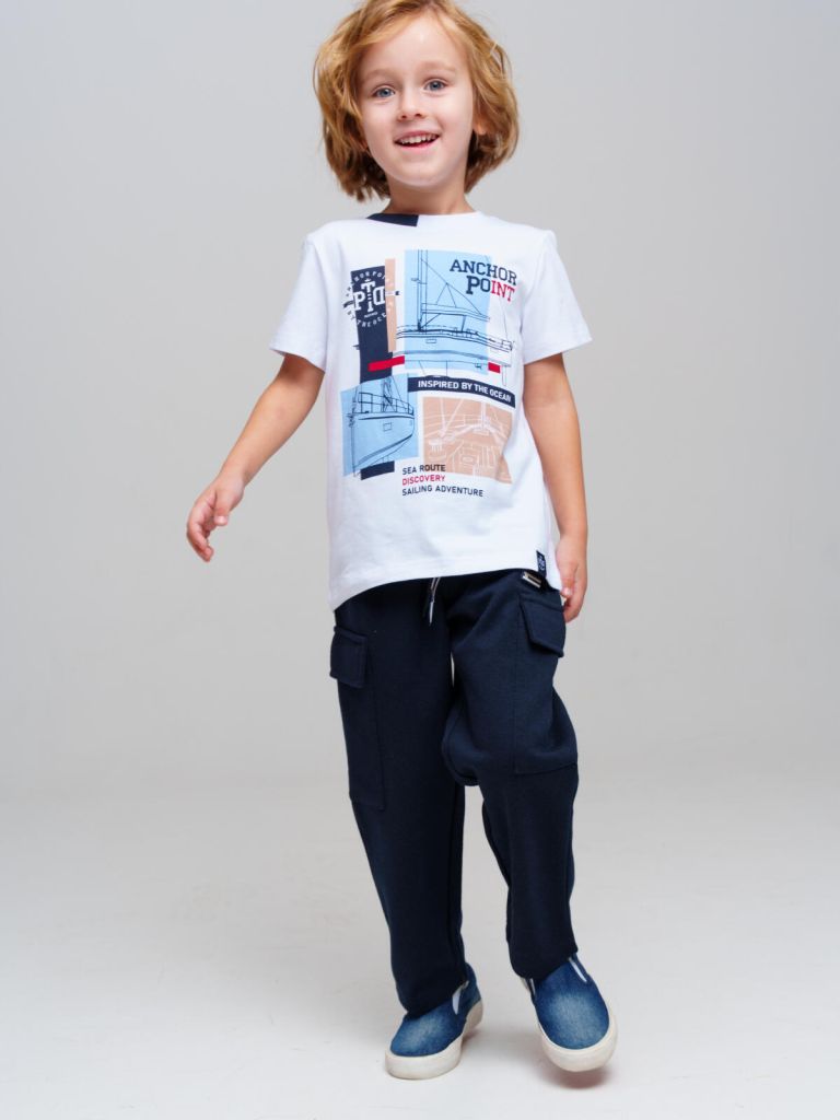 Футболка детская для мальчика. Футболка из качественного и приятного на ощупь трикотажа джерси. Модель с высоким содержанием хлопка 95%. Благодаря наличию эластана в составе ткани изделие проще в уходе и держит форму. Модель выполнена из качественного и приятного на ощупь трикотажа.
