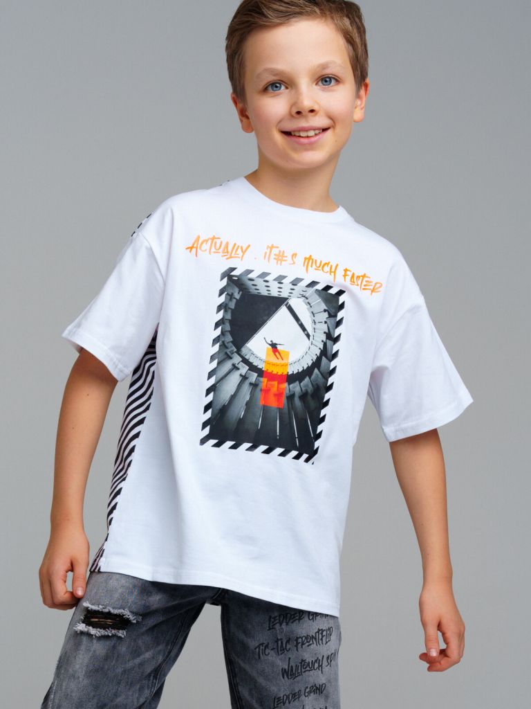 Футболка свободного силуэта из качественного и приятного на ощупь трикотажа джерси. Высокое содержание хлопка 95%. Благодаря наличию эластана в составе ткани изделие проще в уходе и держит форму.