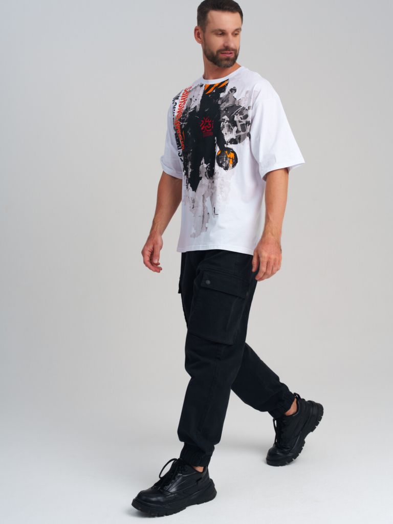 Футболка мужская. Футболка оверсайз из качественного и приятного на ощупь трикотажа джерси с высоким содержанием хлопка 95%. Благодаря наличию эластана в составе ткани изделие проще в уходе и держит форму. Модель выполнена из качественного и приятного на ощупь трикотажа.