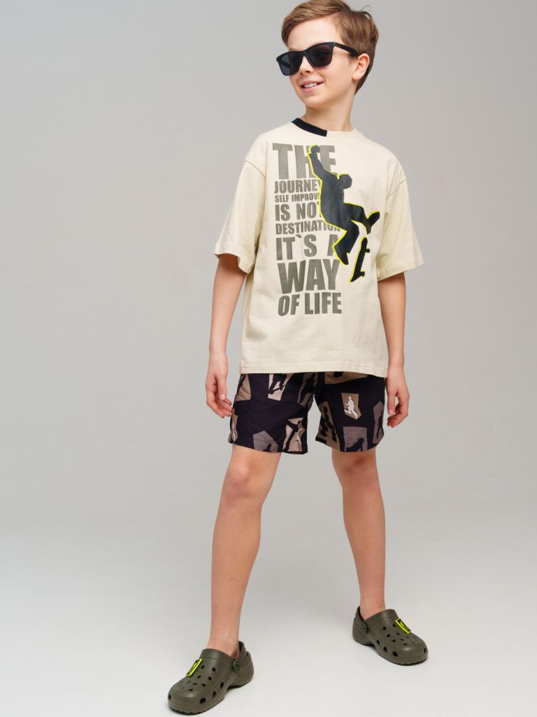 Футболка оверсайз для мальчика подростка. Высокое содержание хлопка. Благодаря наличию эластана в составе ткани изделие держит форму и меньше мнется. Модель выполнена из качественного и приятного на ощупь трикотажа.