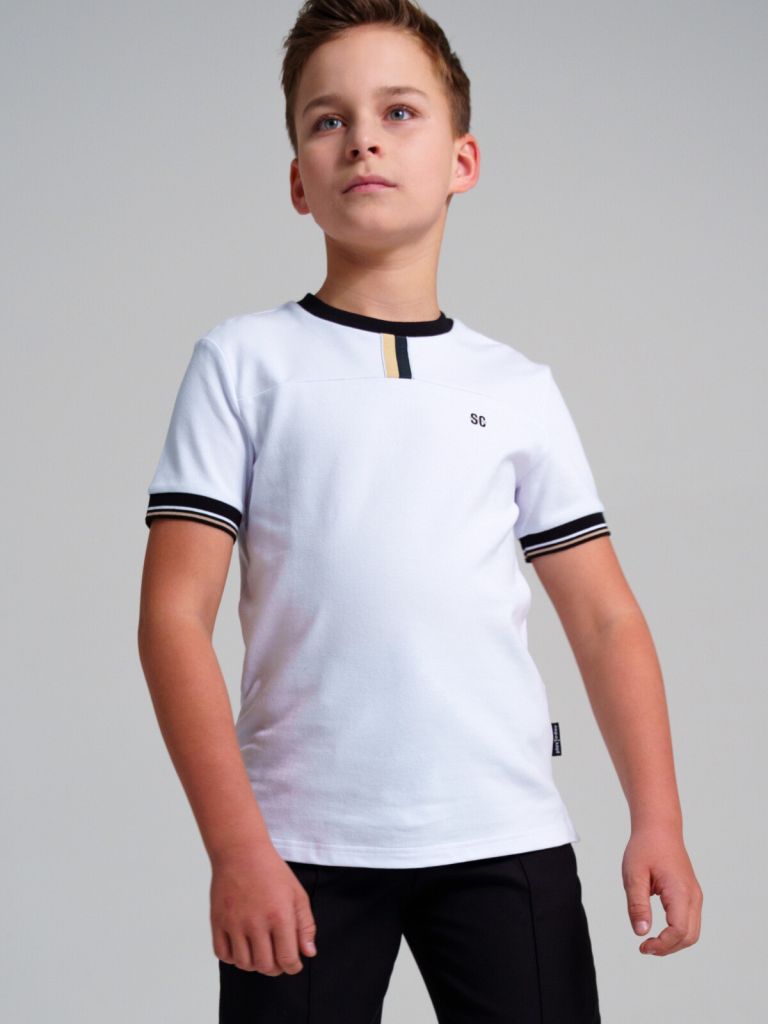 Прямой крой и аккуратные боковые разрезы создают динамичный и современный силуэт, подчёркивая энергичный стиль школьника. Универсальный белый цвет подходит для учебы, занятий спортом, прогулок и повседневных образов.