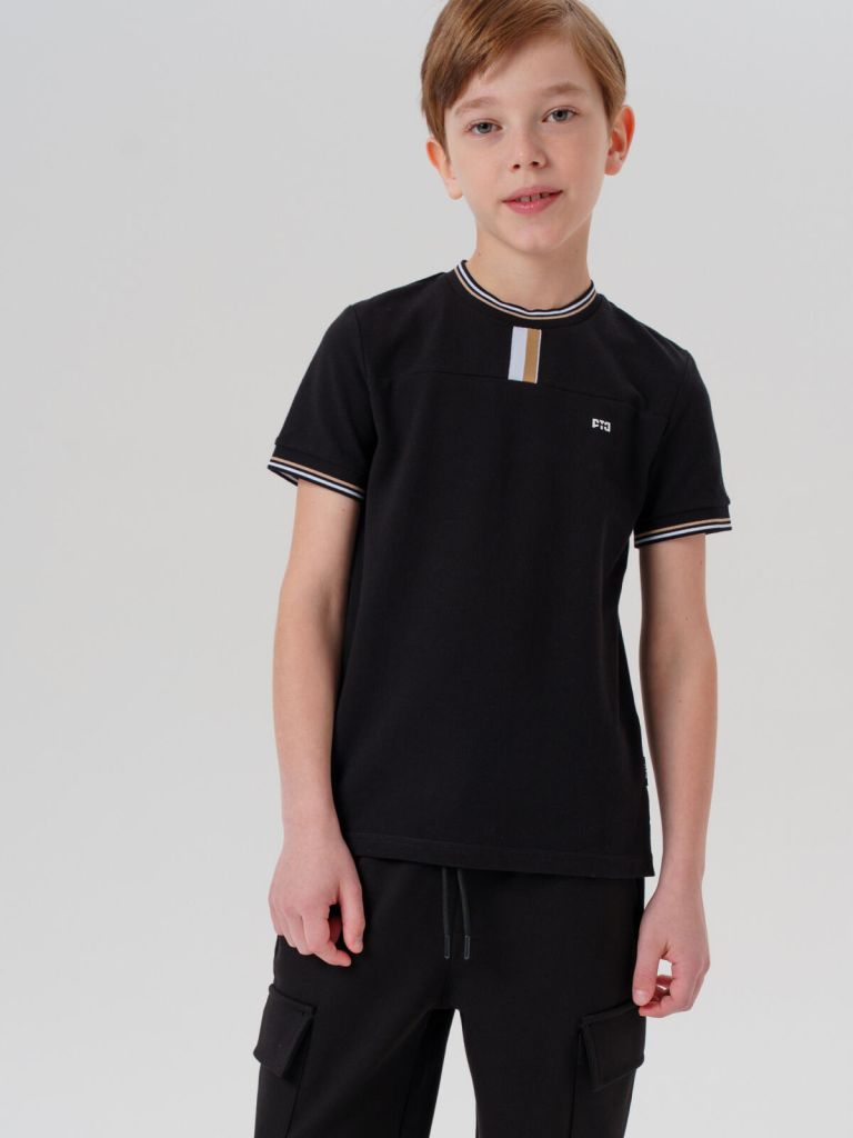 Черная хлопковая футболка с коротким рукавом для мальчика подростка от PlayToday — стильная, удобная и практичная вещь для школы и активных будней. Базовый элемент гардероба, который легко сочетать с любой школьной или повседневной одеждой.