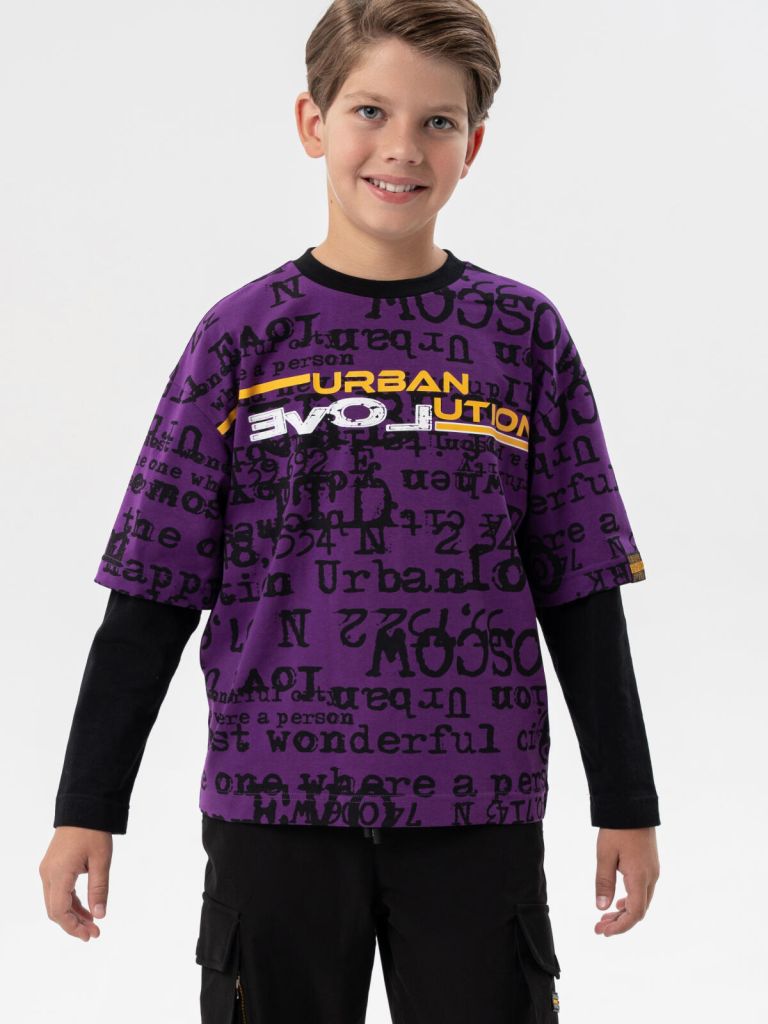 Модный фиолетовый лонгслив для мальчика подростка от PlayToday — универсальное решение для школы и прогулок.