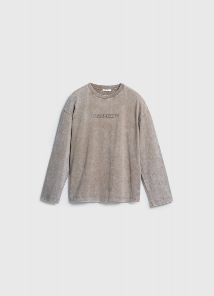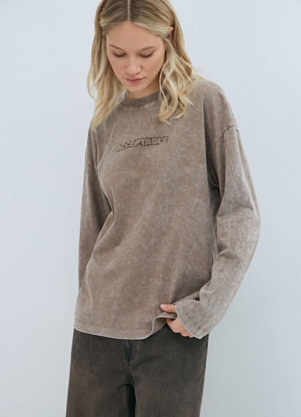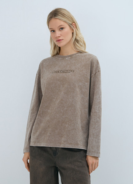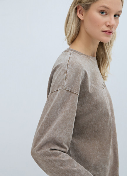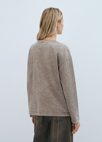 Лонгслив с принтом и эффектом стирки, Бежевый