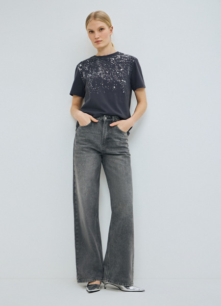 Футболка с леопардовым принтом и эффектом стирки, Бежевый