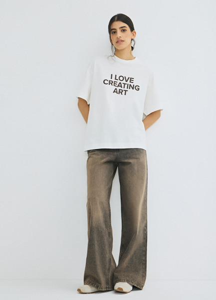 Футболка с леопардовым принтом и эффектом стирки, Бежевый