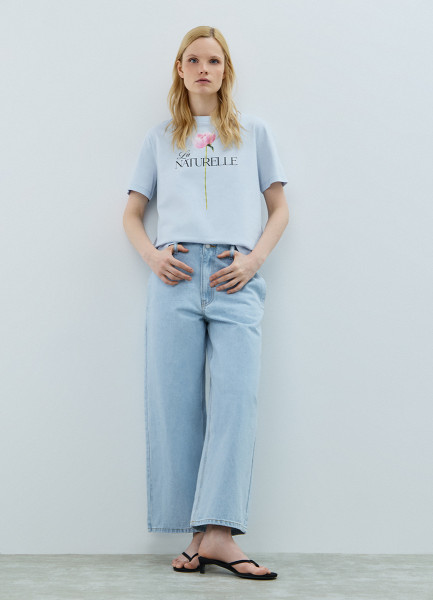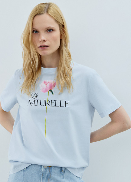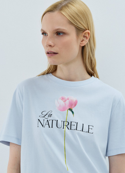 Футболка с цветочным принтом, Голубой