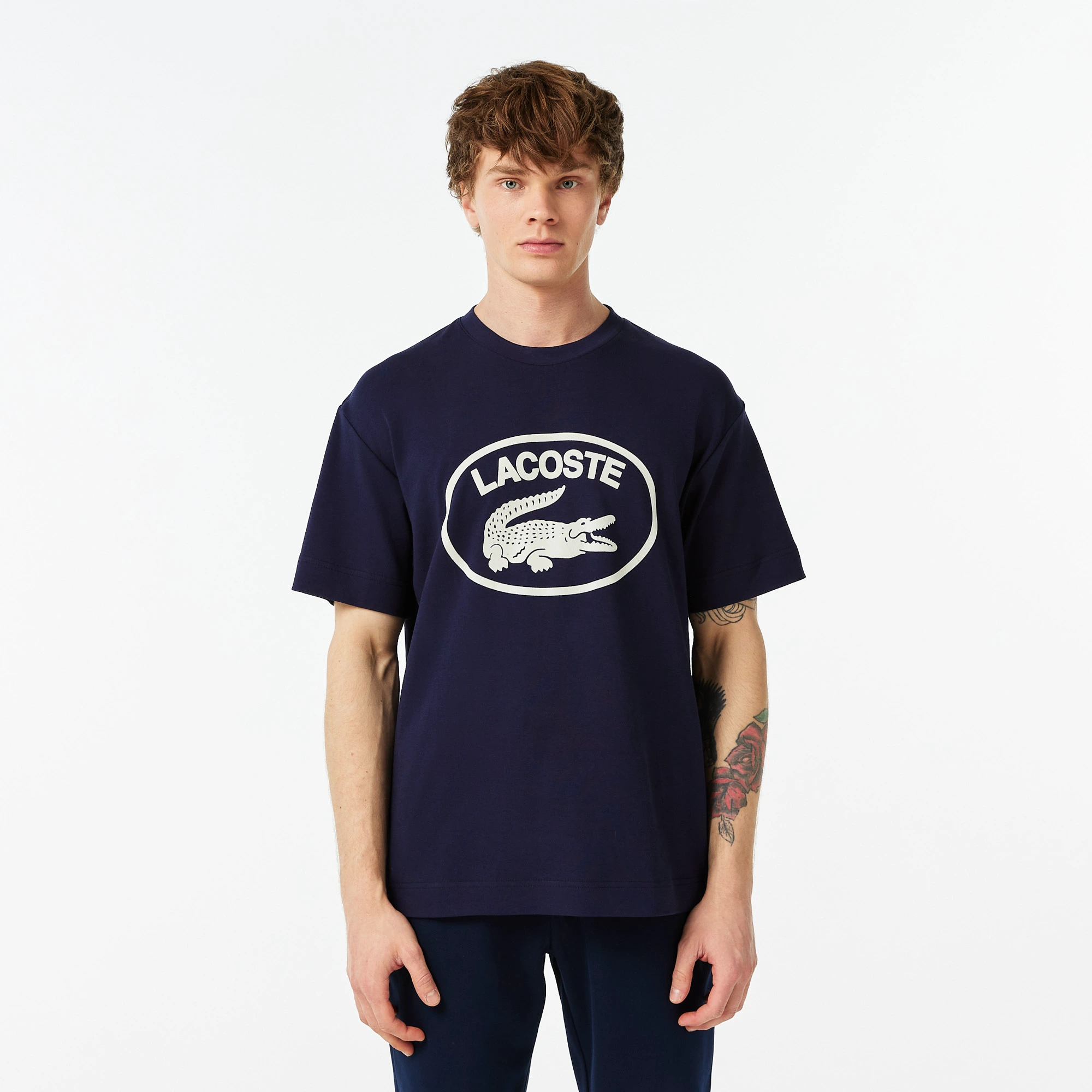 Мужская фирменная хлопковая Футболка Lacoste Relaxed Fit \ Свободный крой, удобный крой, прямые рукава: \ Круглый вырез горловины: \ Надпись тон в тон и крокодил: \ Вышитый крокодил, пришитый сзади: \ Органический хлопок: \ Прямые рукава;\Круглый вырез\М...