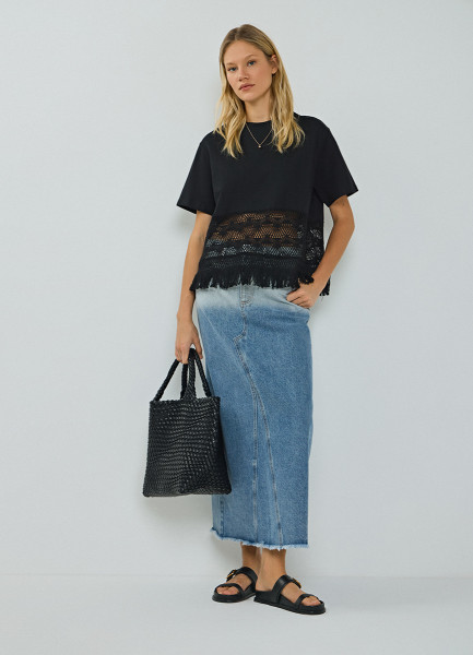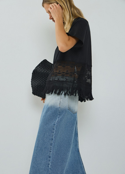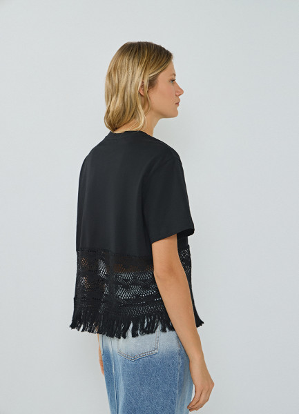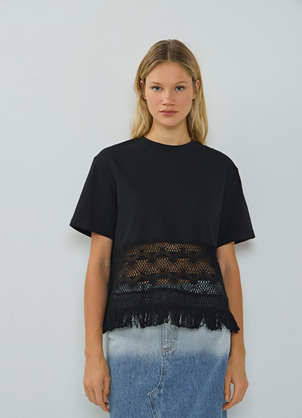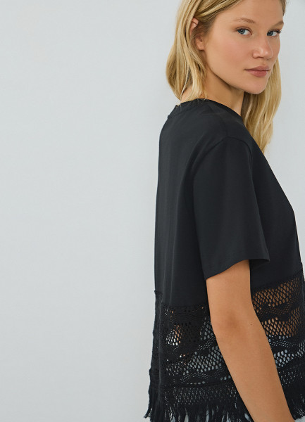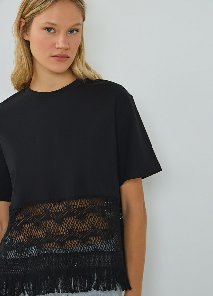 Футболка с кружевом и бахромой, Черный