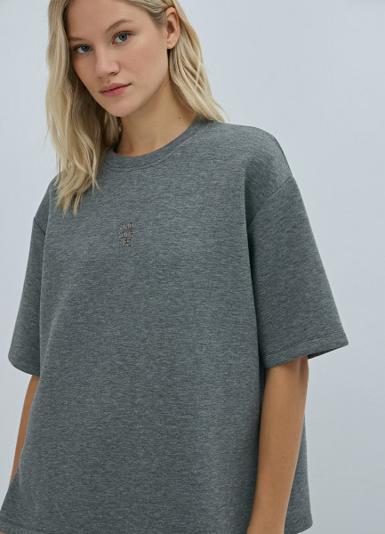 Футболка оверсайз с флок-принтом, Серый