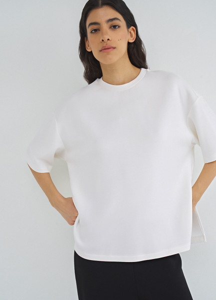 Футболка оверсайз с разрезами, Бежевый