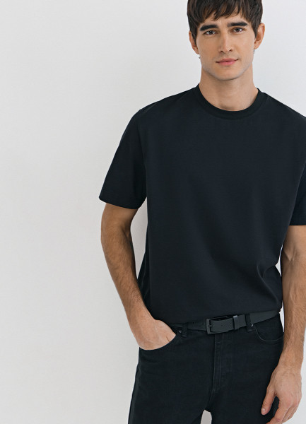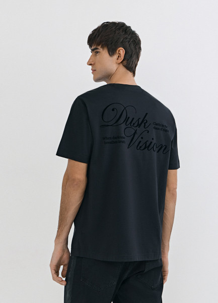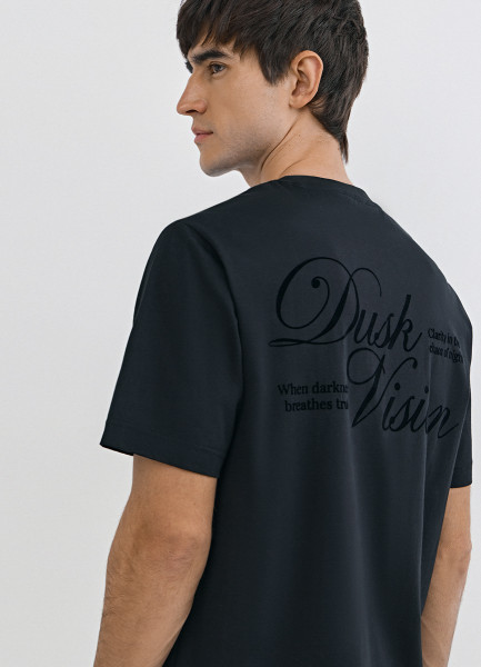 Футболка из мерсеризованного хлопка с принтом, Черный