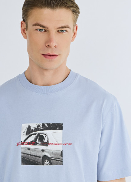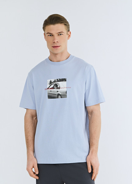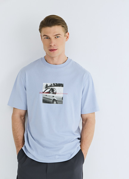 Футболка с принтом, Голубой