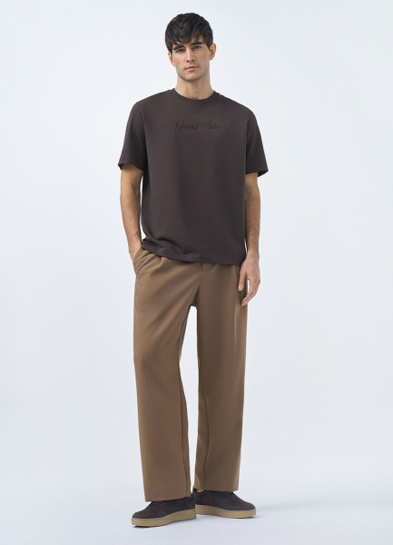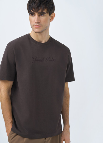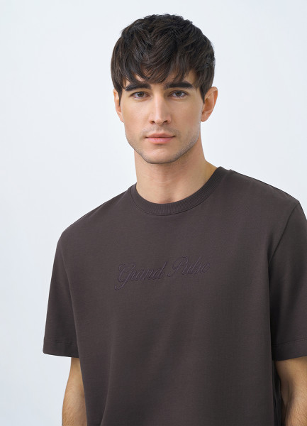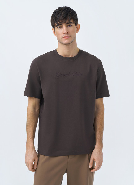 Футболка с текстовой вышивкой, Коричневый