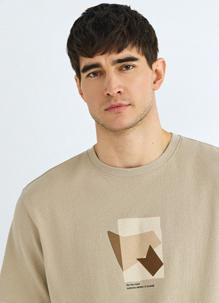 Футболка из текстурной ткани с нашивкой, Бежевый