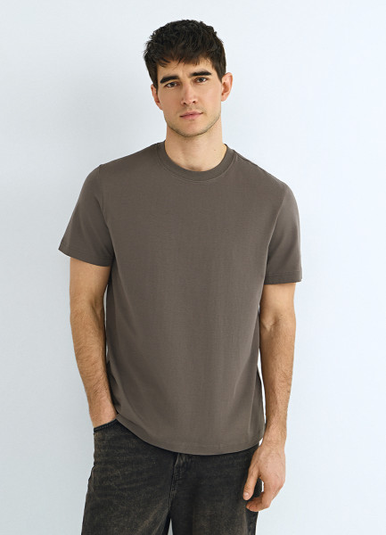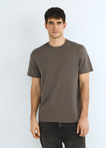 Футболка из текстурной ткани с нашивкой, Бежевый