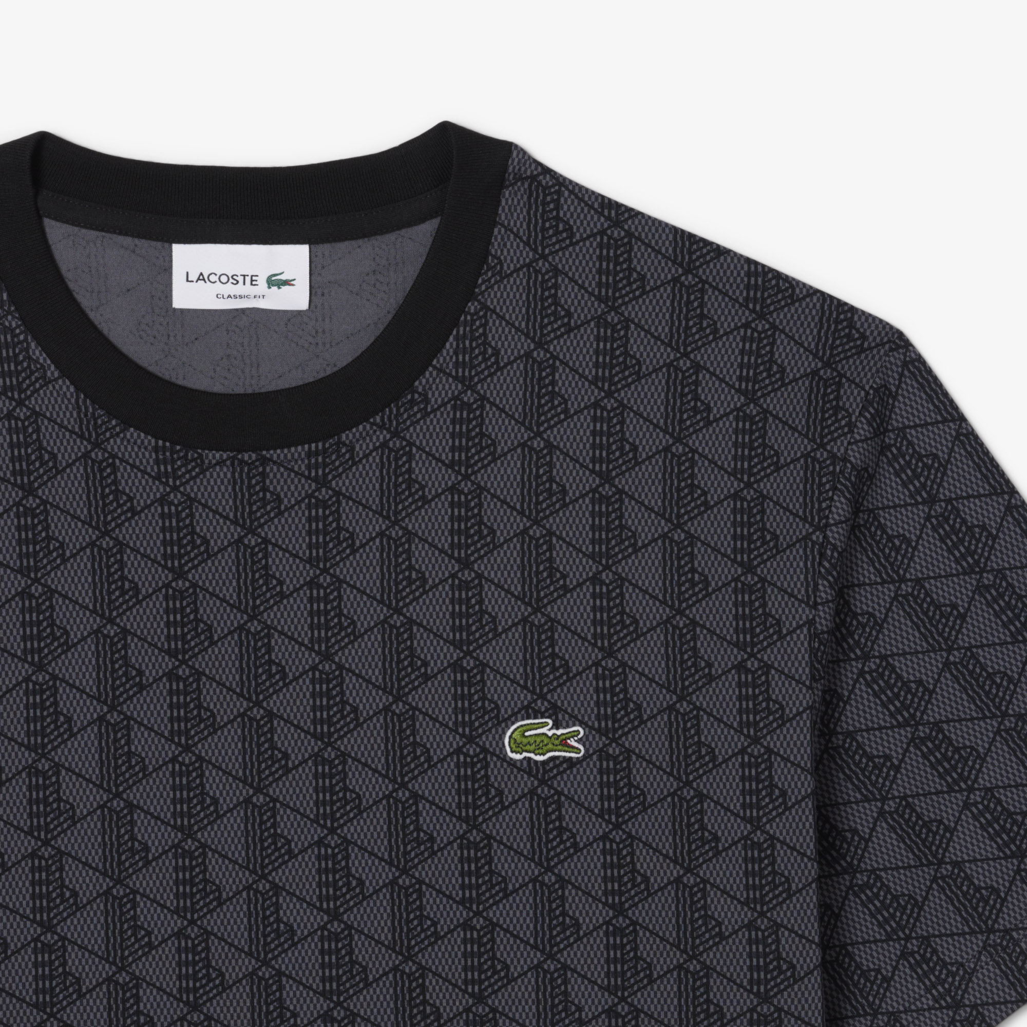 Футболка из хлопка с монограммой \ Трикотажная ткань из органического хлопка \ Классический крой, удобные рукава \ Принт с монограммой Lacoste по всему телу \ Воротник в рубчик \ Пришитое лого на груди\ Материал: 100% органический хлопок