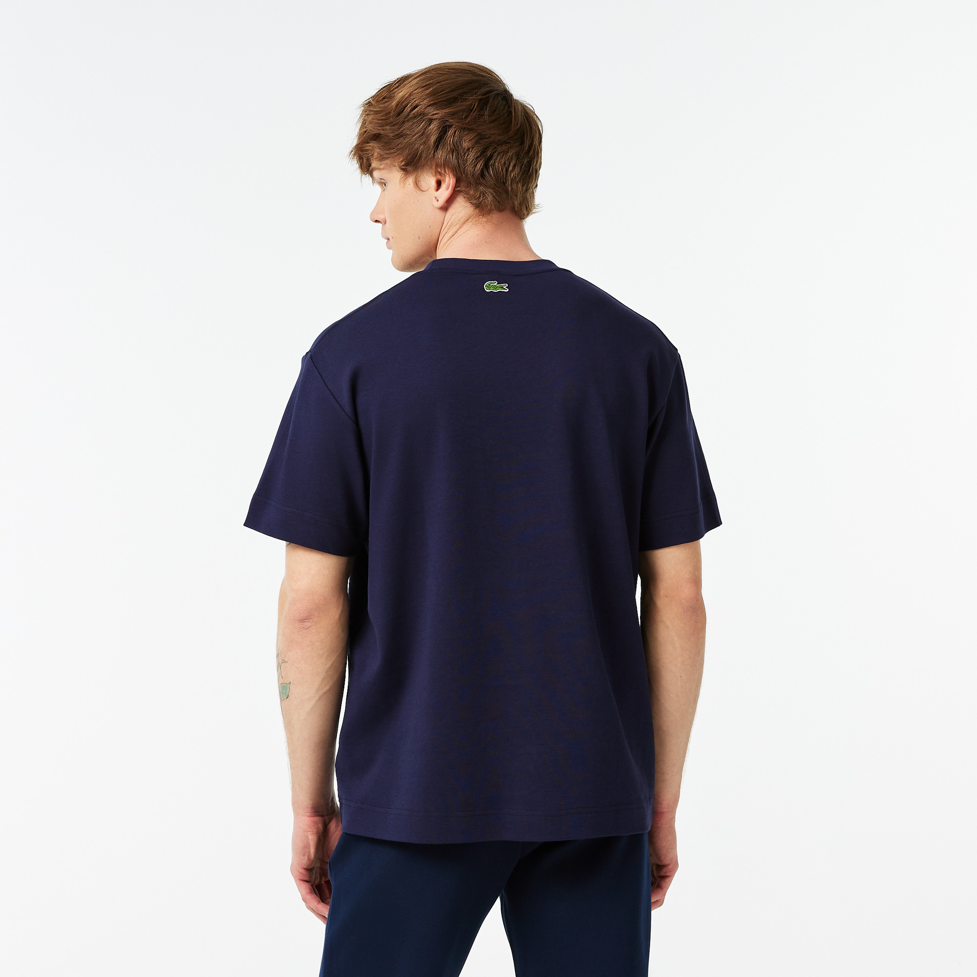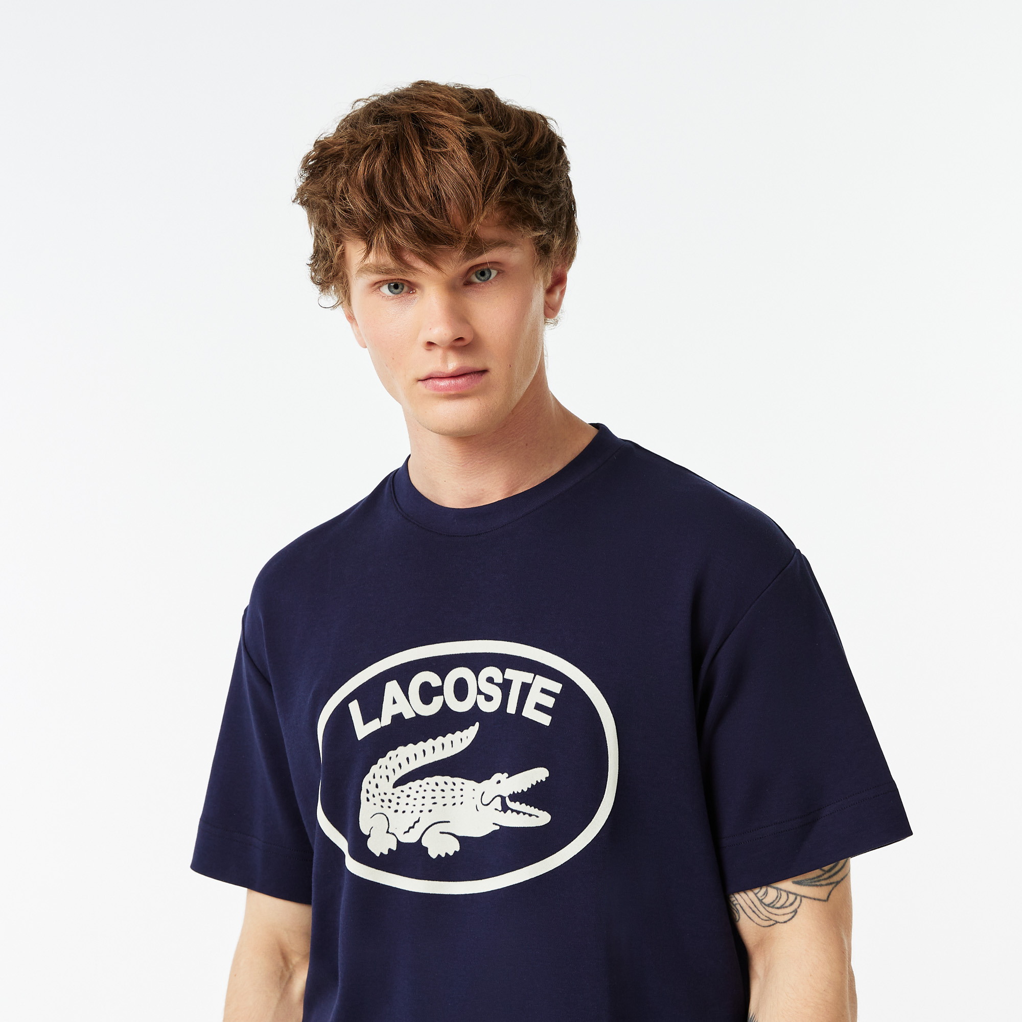 Мужская фирменная хлопковая Футболка Lacoste Relaxed Fit \ Свободный крой, удобный крой, прямые рукава: \ Круглый вырез горловины: \ Надпись тон в тон и крокодил: \ Вышитый крокодил, пришитый сзади: \ Органический хлопок: \ Прямые рукава;\Круглый вырез\М