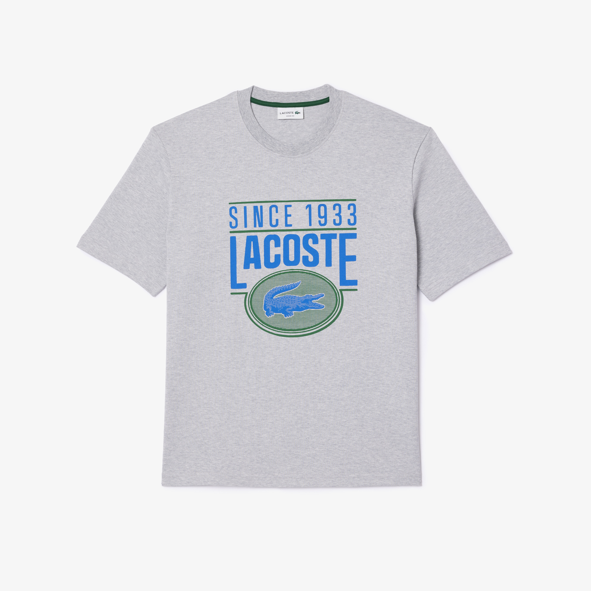 Футболка свободного кроя из плотного хлопка с принтом \ Органический хлопок \ Круглый вырез \ Контрастный принт \ Вышивка крокодила на спине \ Выберите на 1 размер меньше вашего обычного размера для более приталенного фасона. \ Круглый вырез\Короткие рука