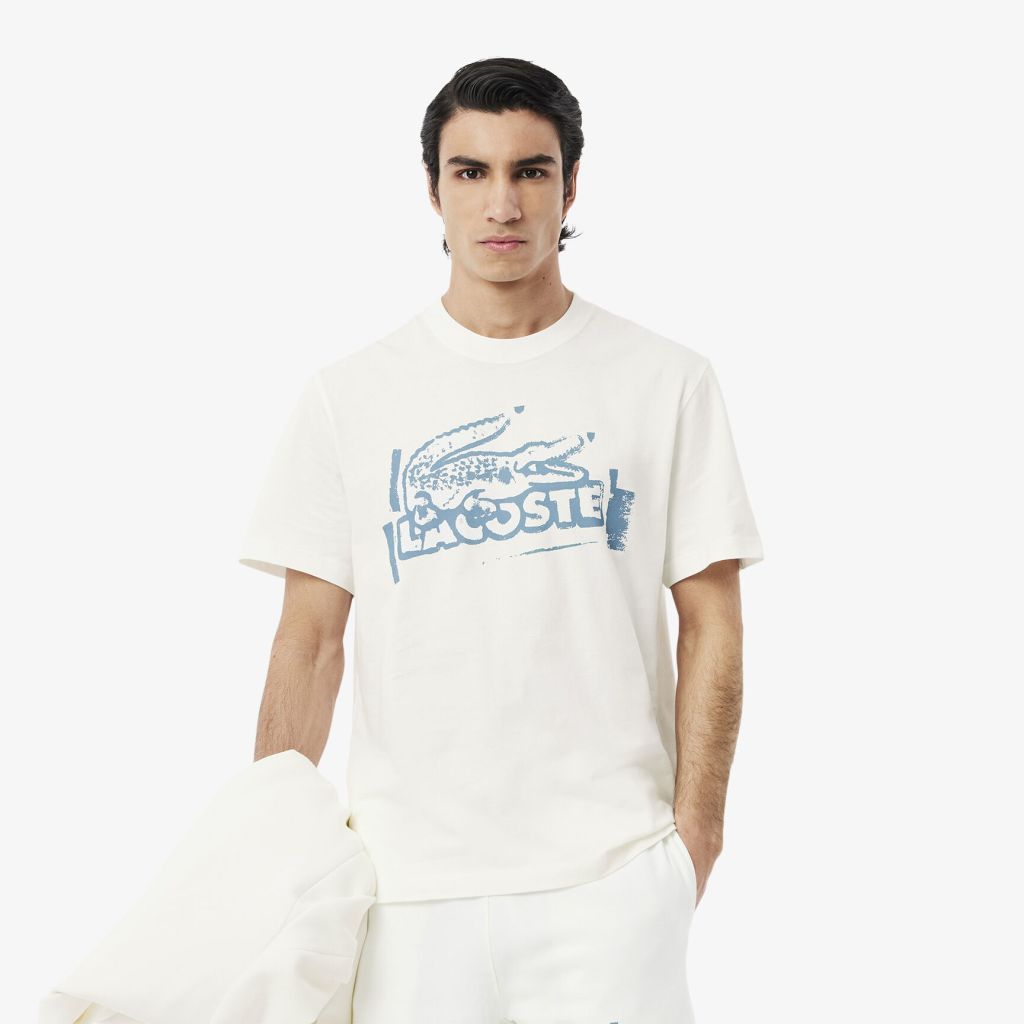 Футболка из хлопкового джерси с принтом \ Органический хлопковый трикотаж \ Классический крой для естественной непринужденности \ Пигментный принт с эффектом трафарета на груди с логотипом крокодила и Lacoste \ Вышитый крокодил на спине \ Материал: 100%