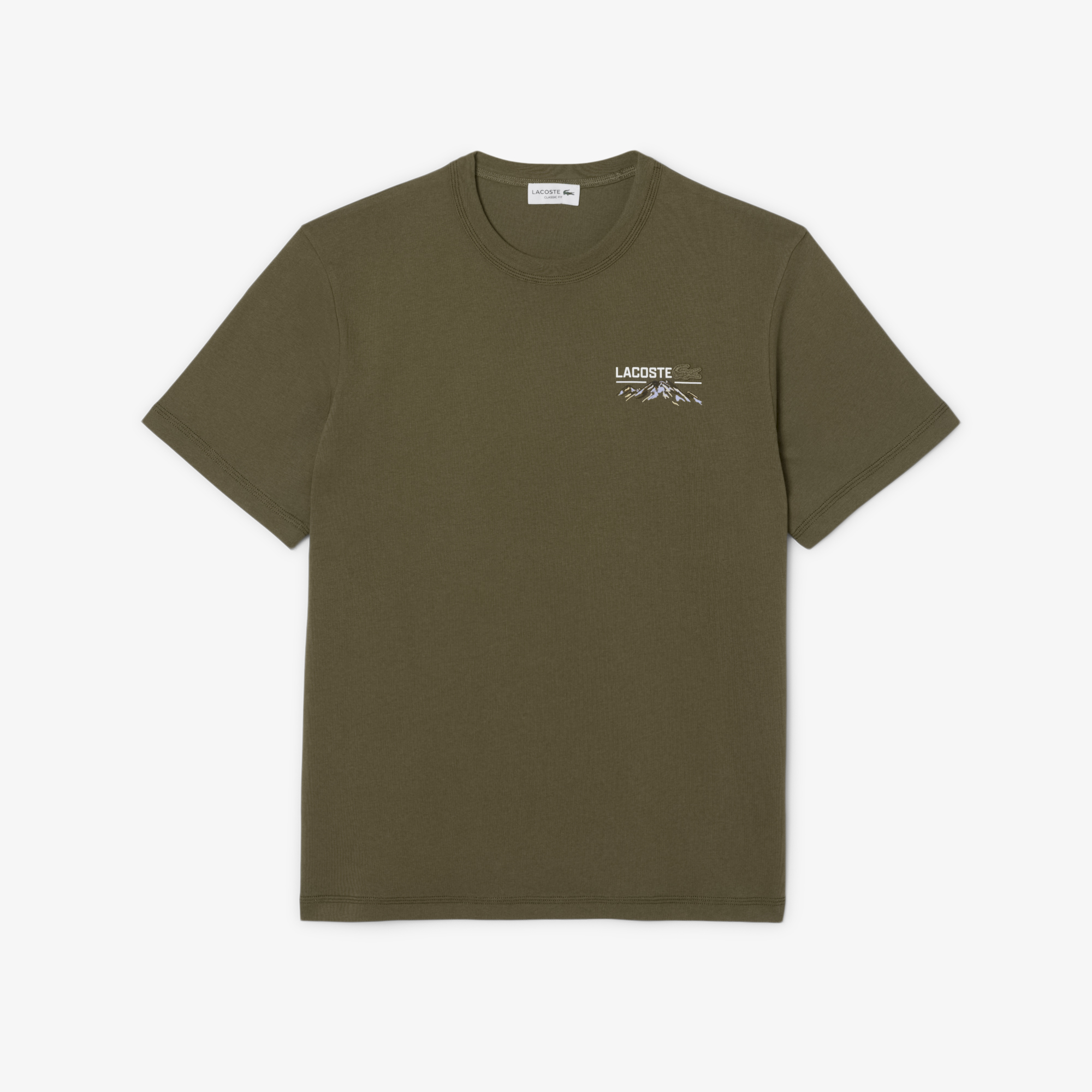 Футболка из хлопка с несколькими принтами \ Трикотажная ткань из органического хлопка \ Классический крой, удобные рукава \ Тройная отстрочка на шее и рукавах \ Фирменный горный мотив на груди \ Рельефный принт на спине \ Логотип крокодила в тон на груди\