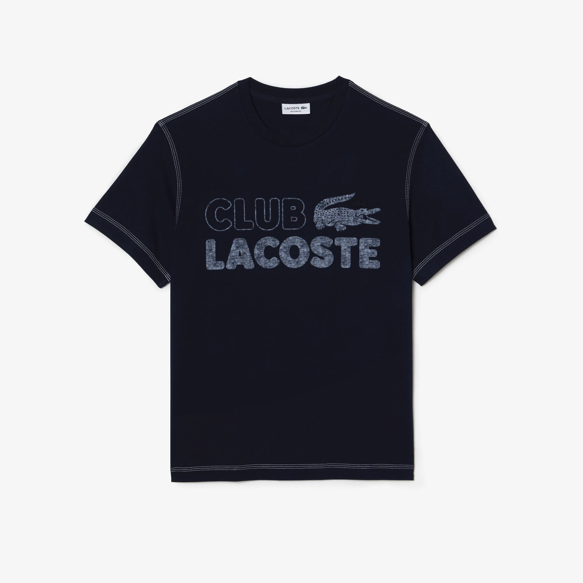 Мужская Футболка из органического хлопка с винтажным принтом Lacoste \ Удобный, непринужденный крой с прямыми рукавами \ Контрастная отстрочка верха \Логотип крокодила тон-в-тон на груди \ Органический хлопок \ Контрастная строчка;\Эффектная инновационна