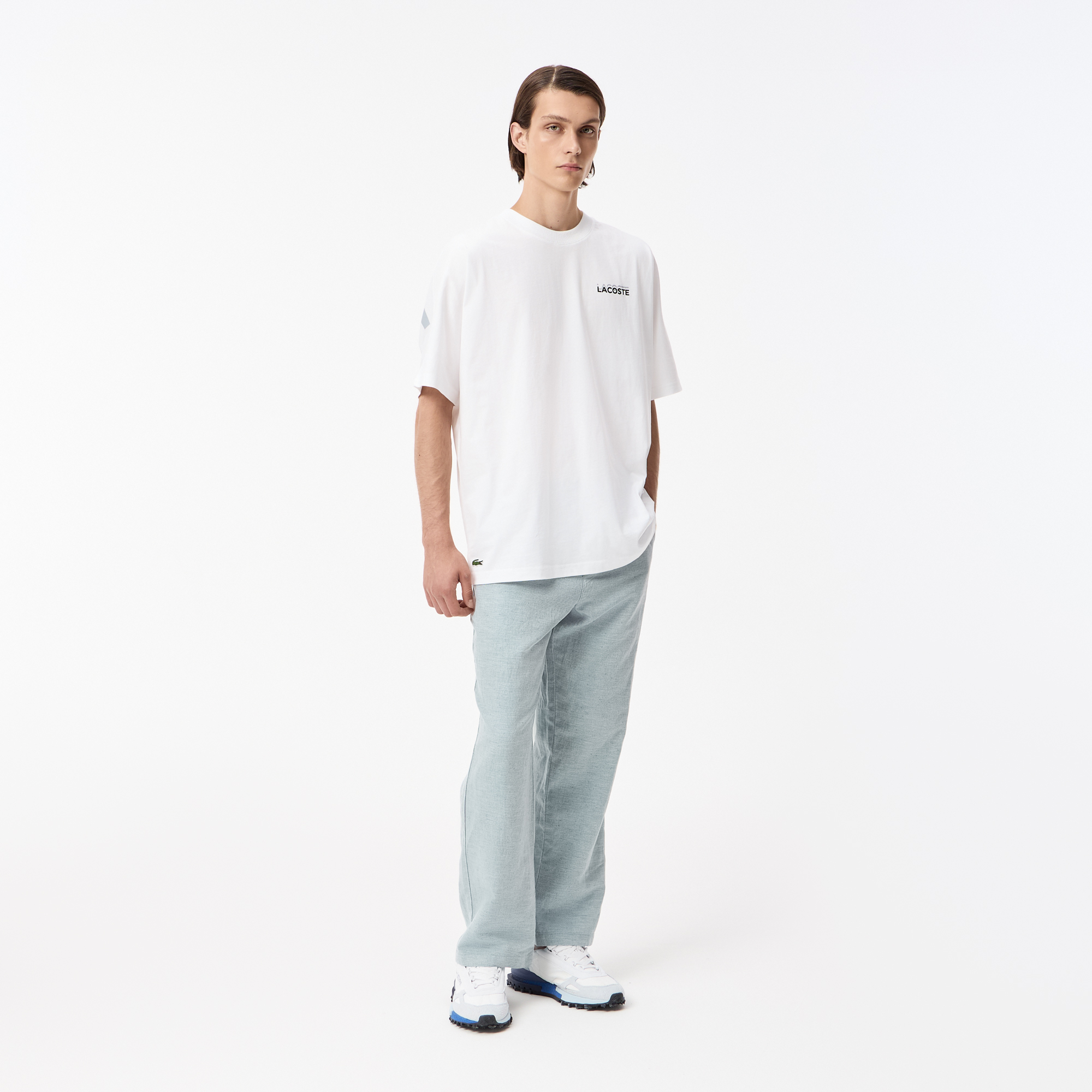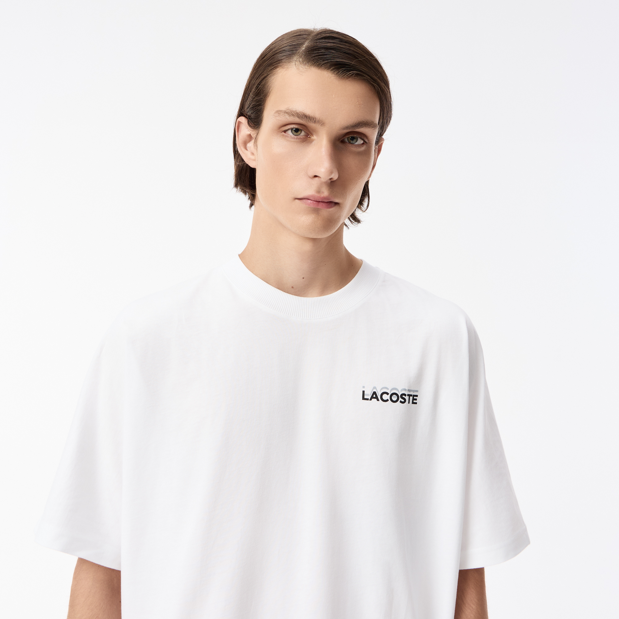 Круглый вырез\Короткие рукава\Спущенная линия плеч\Принт на груди и на спине\Логотип на нижнем крае\Материал: 100% хлопок\Рост модели 189 см, размер одежды 4-M