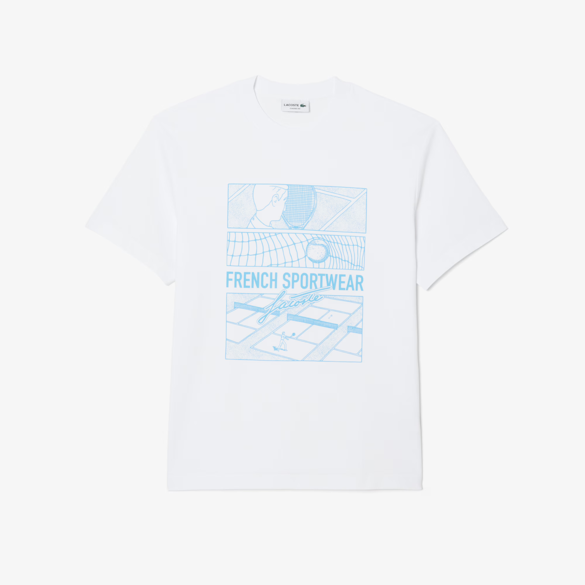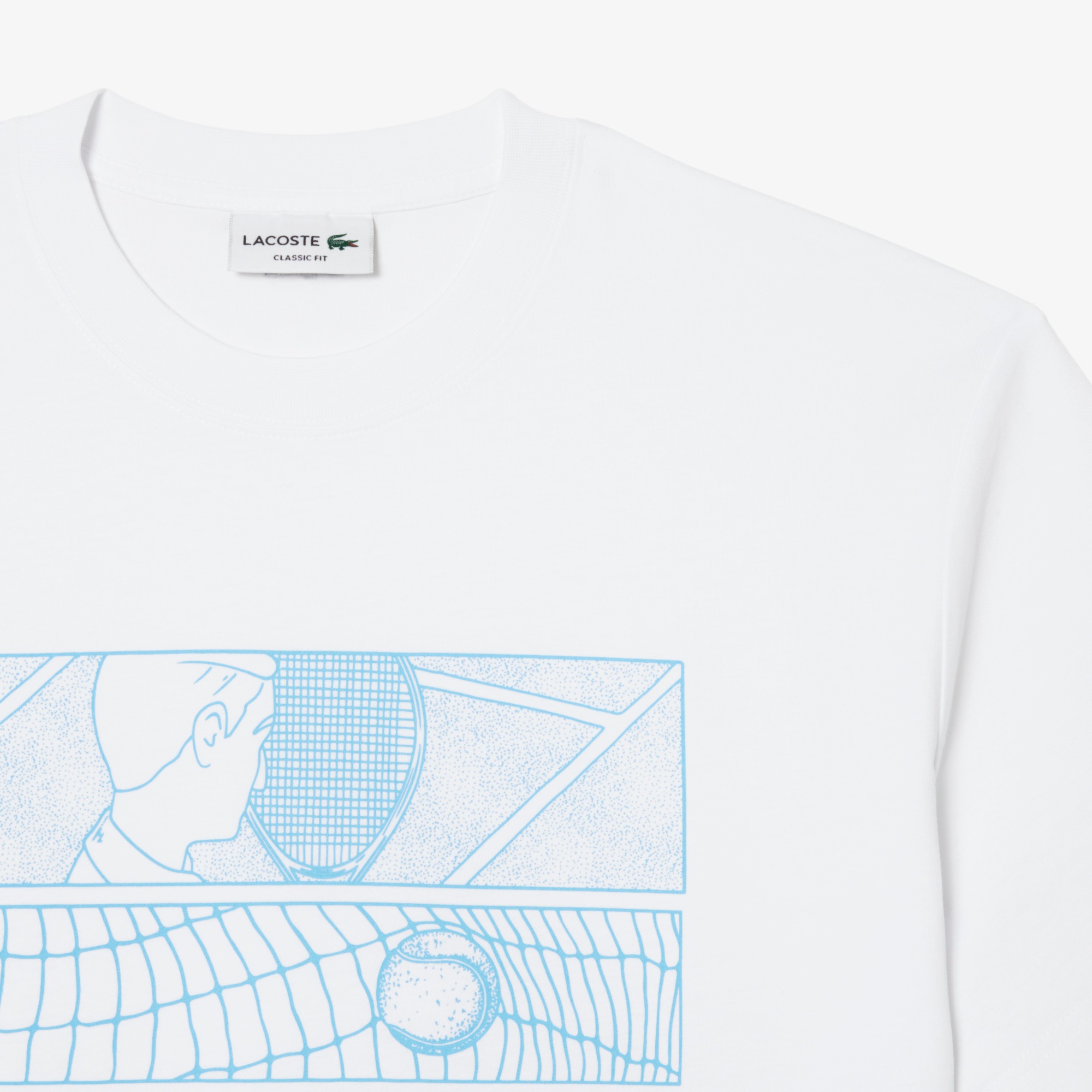 Хлопковая Футболка с принтом теннисного корта \ Хлопчатобумажный трикотаж \ Классический крой, удобные рукава \ Графическая Футболка \ Пришитое лого на груди\ Материал: 100% хлопок