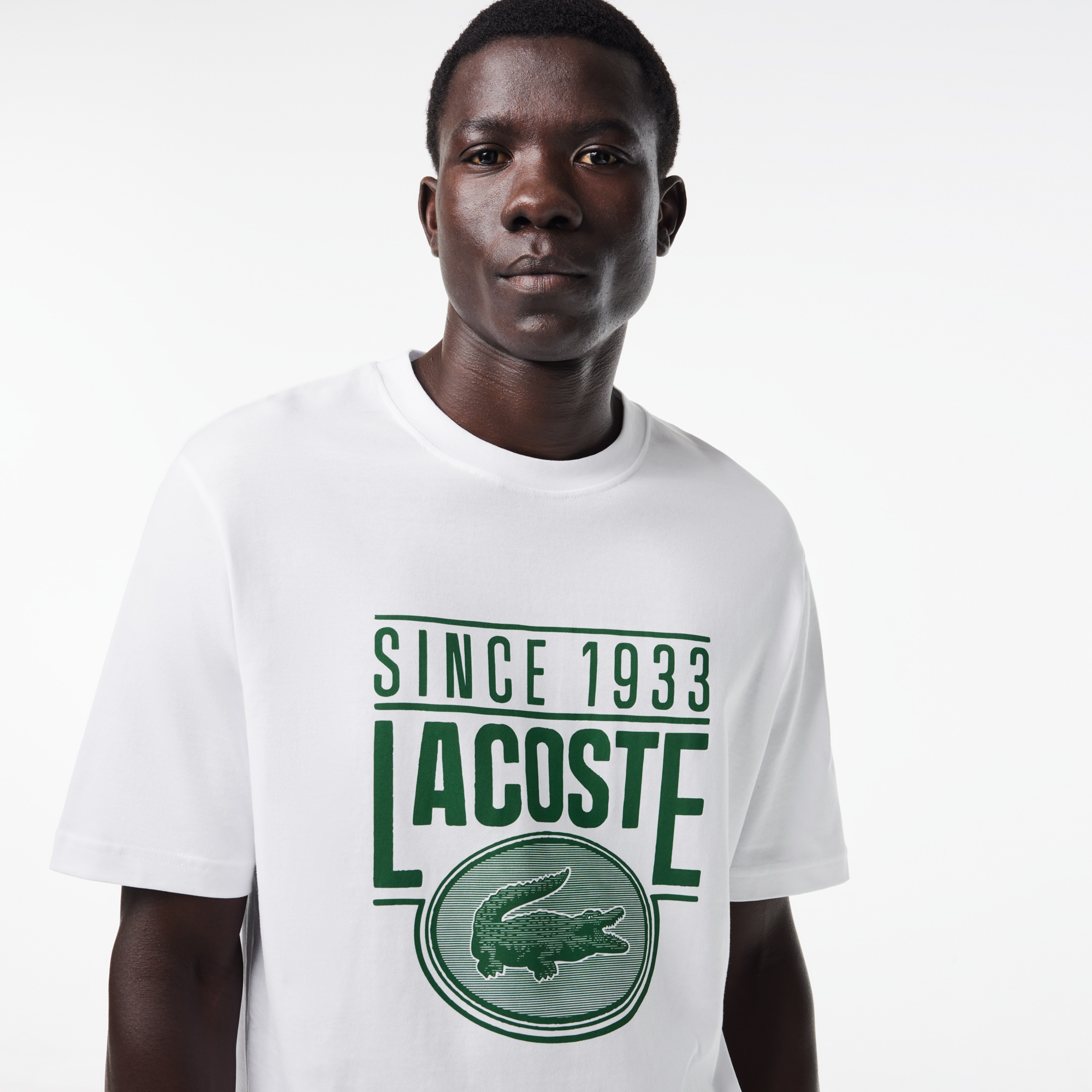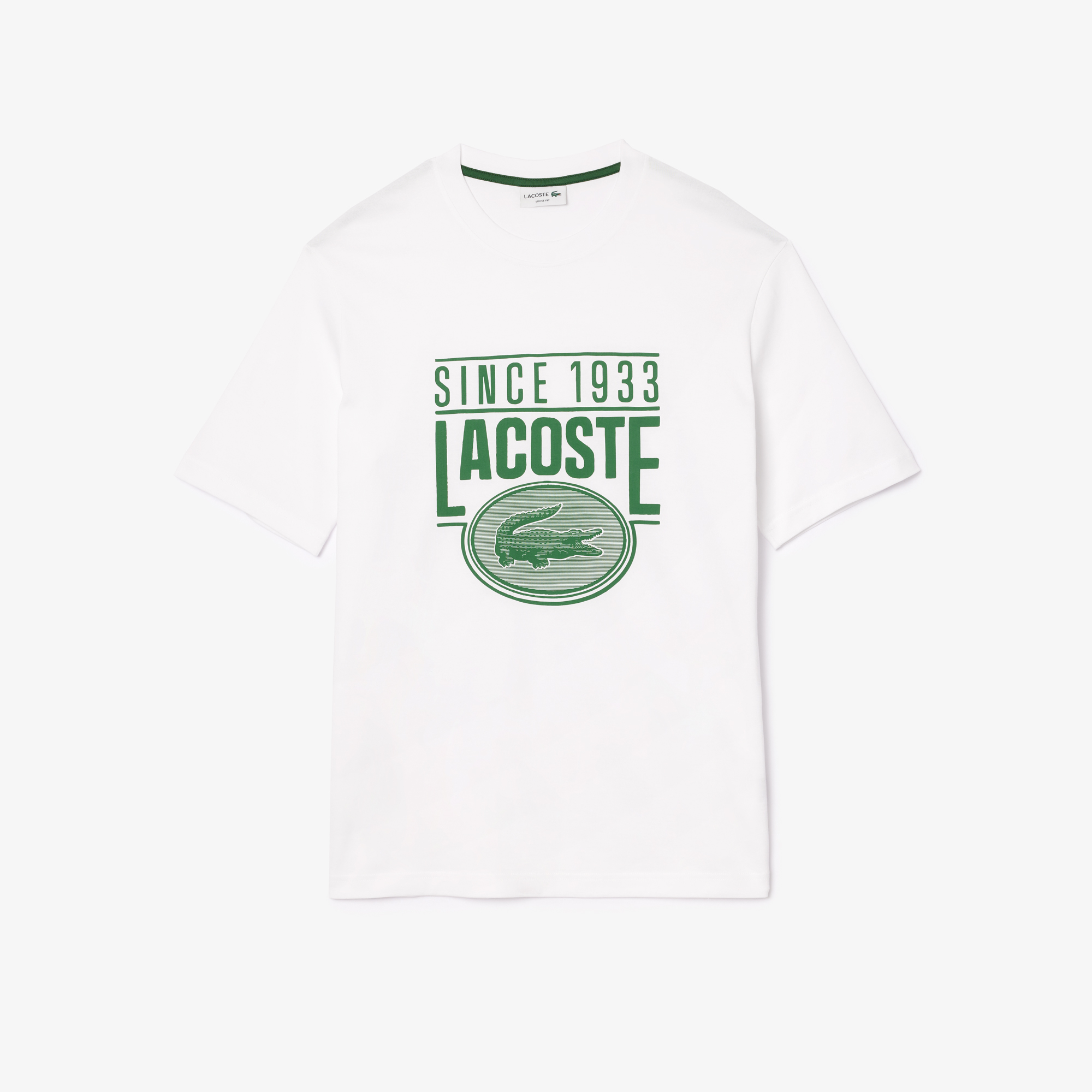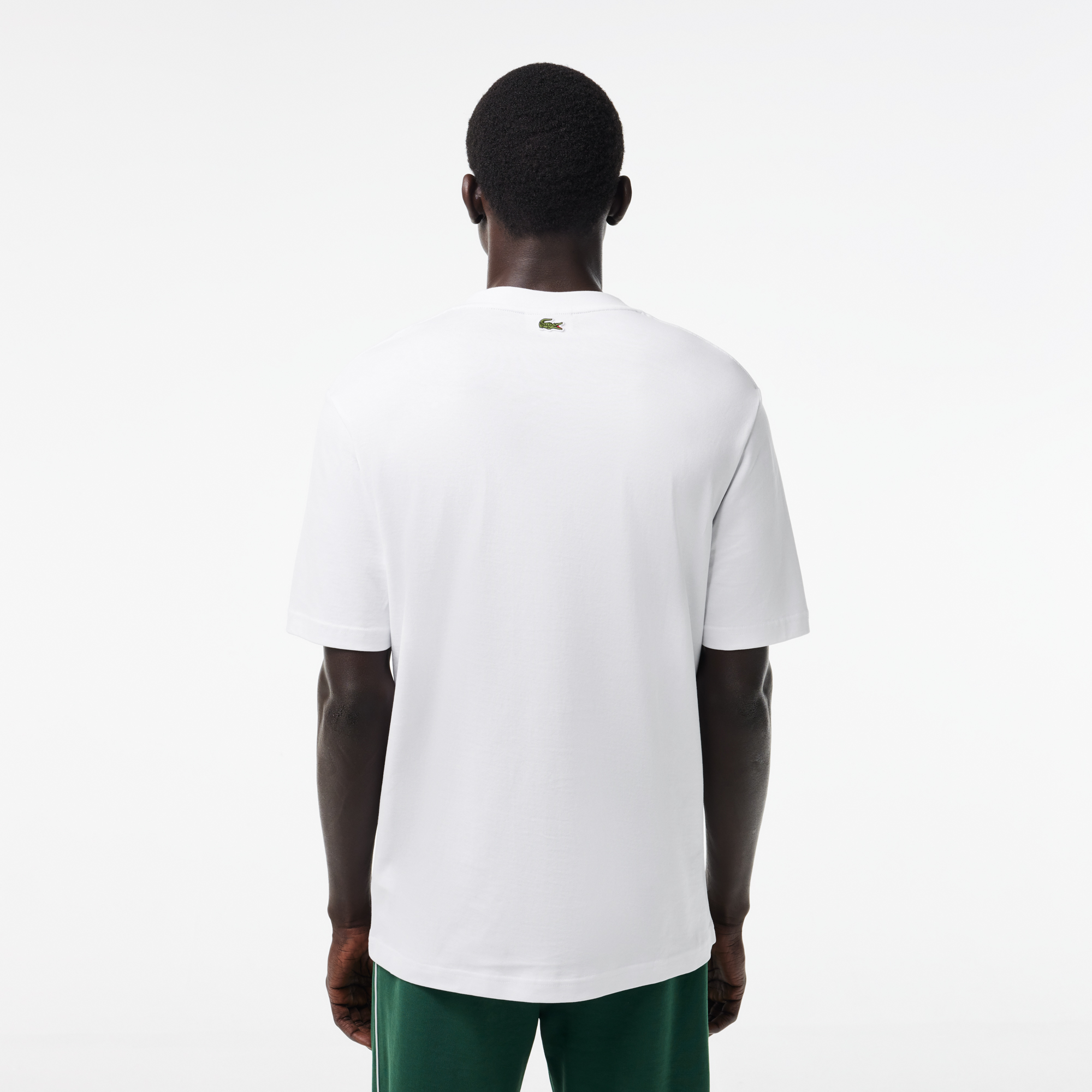 Футболка свободного кроя из плотного хлопка с принтом \ Органический хлопок \ Круглый вырез \ Контрастный принт \ Вышивка крокодила на спине \ Выберите на 1 размер меньше вашего обычного размера для более приталенного фасона. \ Круглый вырез\Короткие рука