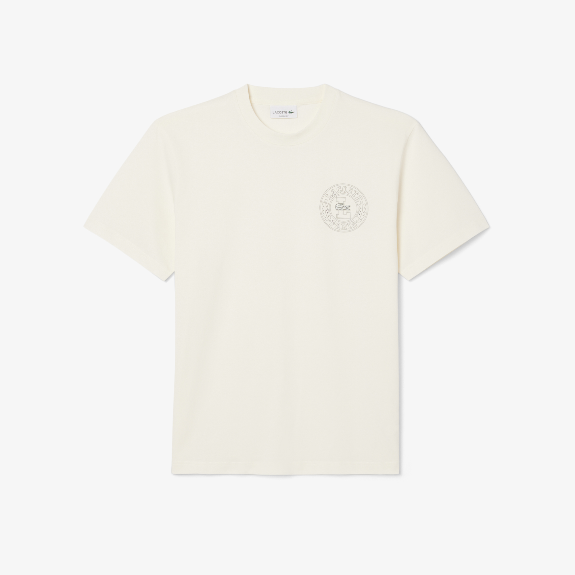Футболка с бейджем из хлопка с принтом \ Трикотаж из органического хлопка \ Классический крой для естественной непринужденности \ Печать бейджа Lacoste Paris на груди \ Ребристая отделка воротника \ Логотип крокодила в тон на груди \ Материал: 94% хлопок