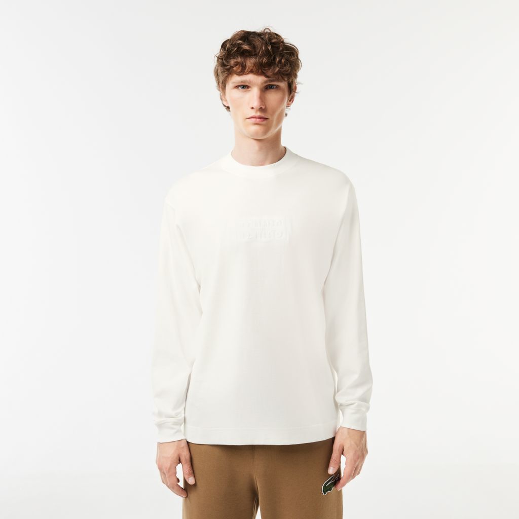 Хлопковая Футболка свободного кроя с длинным рукавом \ Органический хлопок \ Свободный крой, заниженные плечи \ Вышитый логотип на шее \ Выберите на 1 размер меньше вашего обычного размера для более приталенного фасона. \ Круглый вырез;\Длинные рукава;\Сп