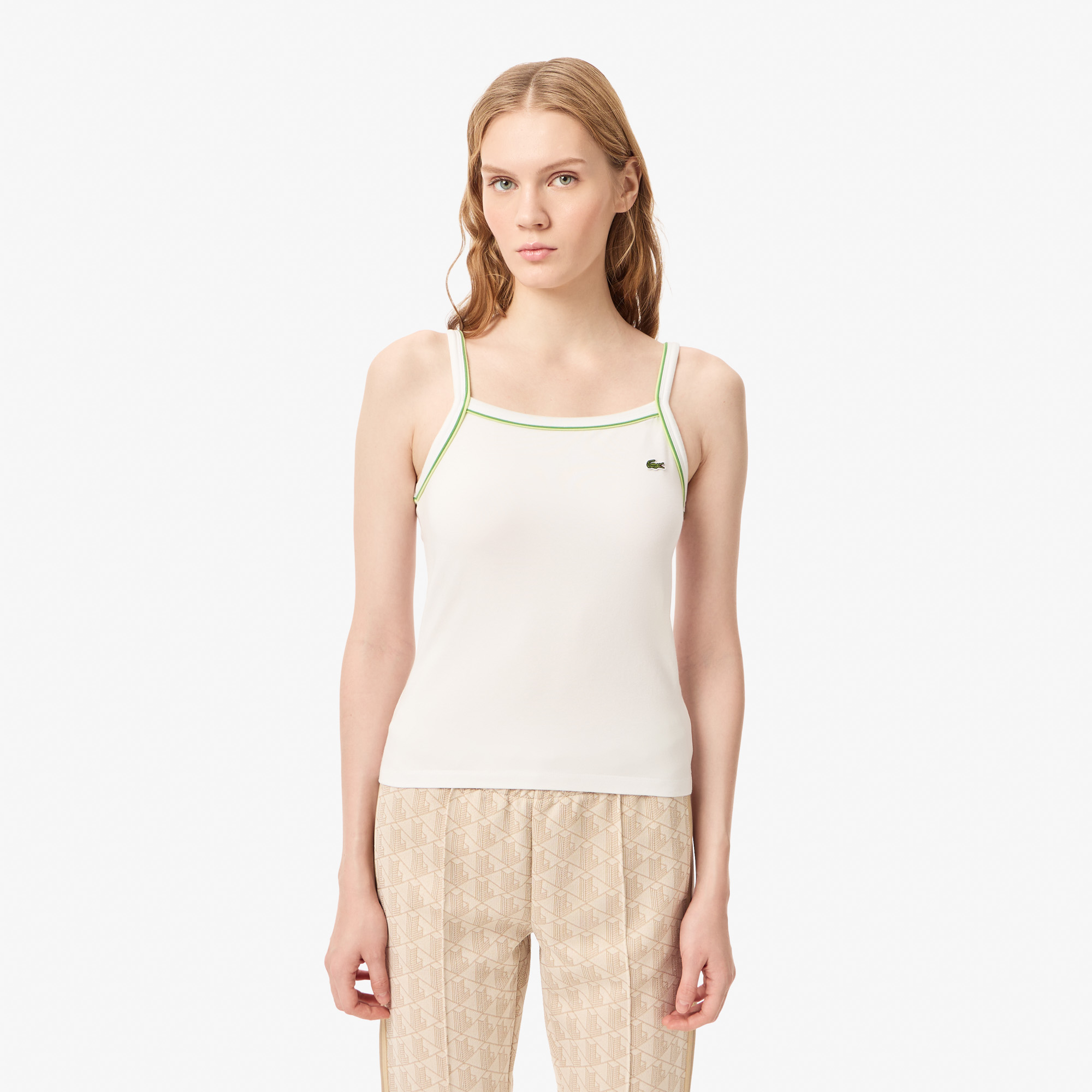 Женская хлопковая майка Lacoste с контрастными акцентами