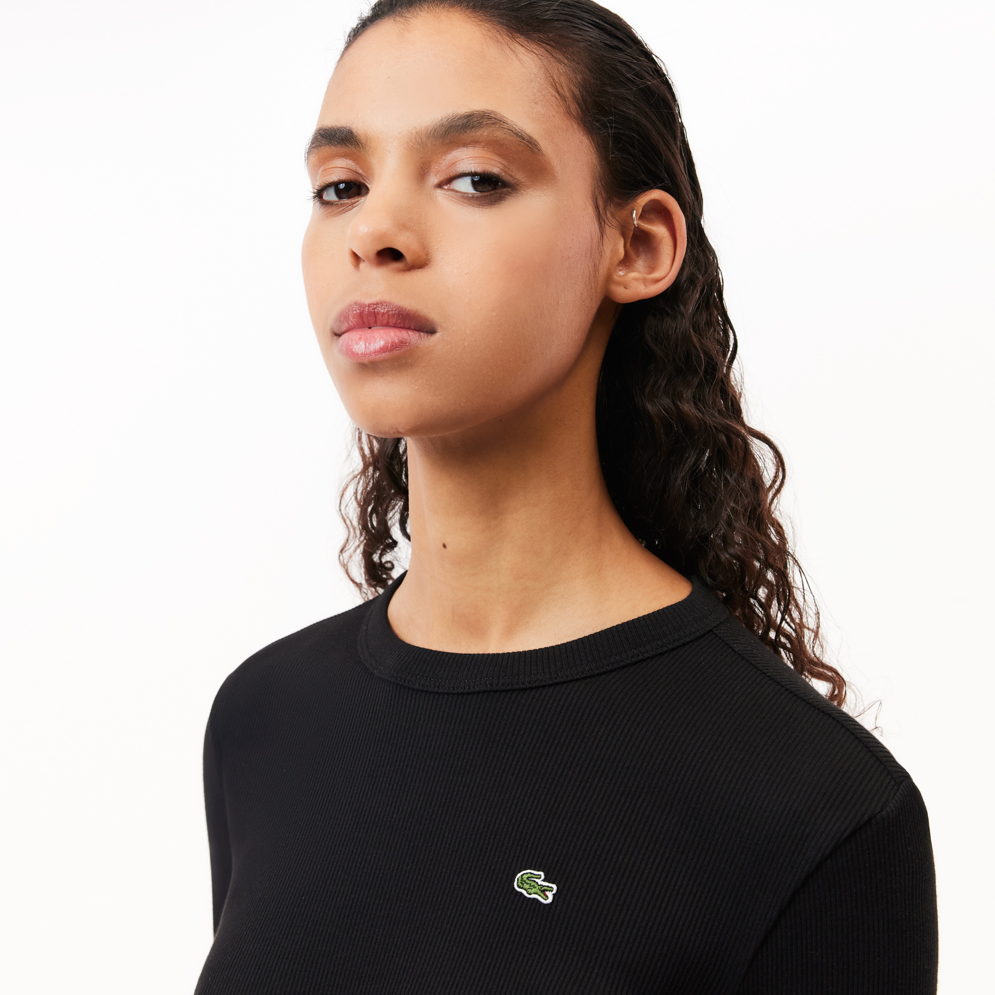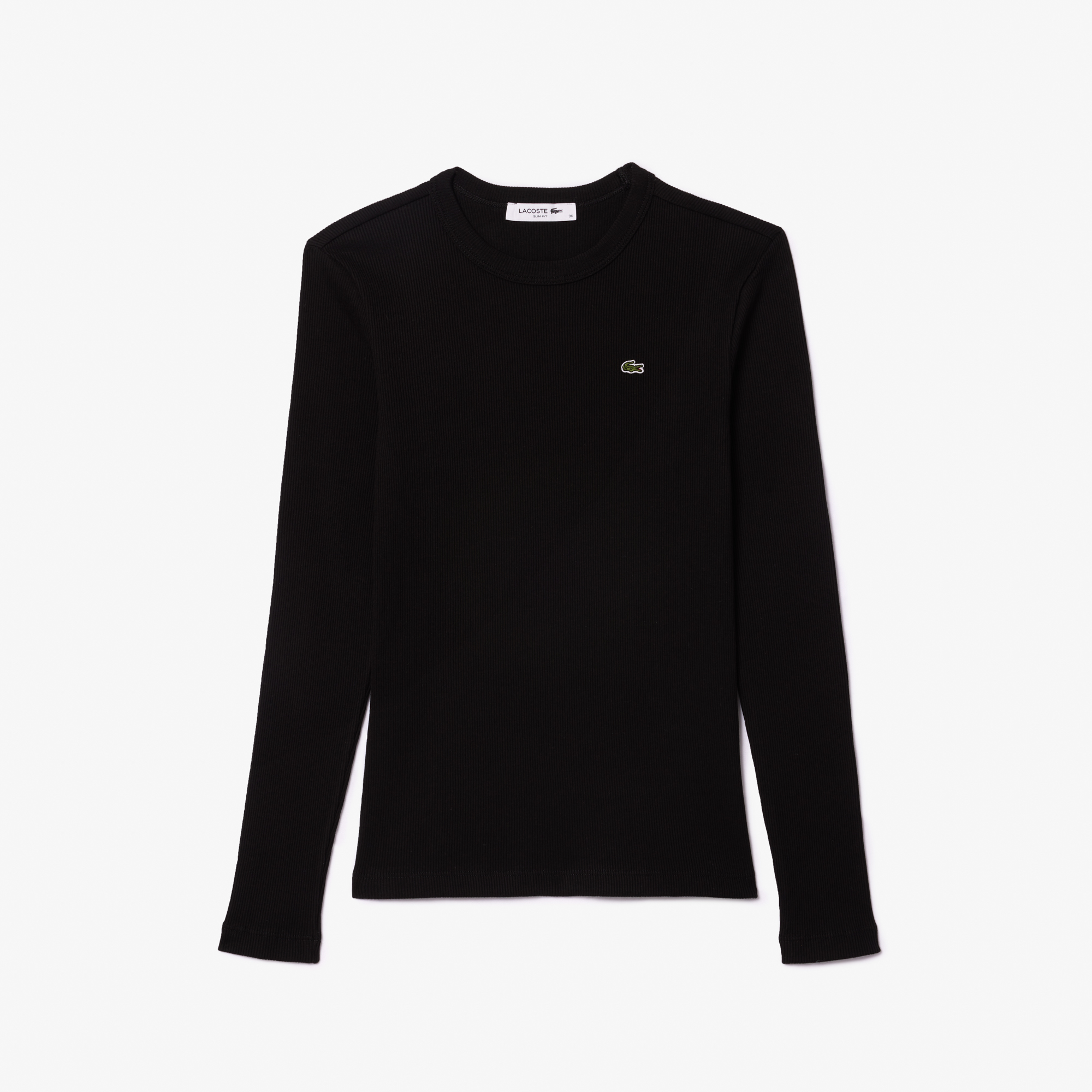 Хлопковая Футболка в рубчик Slim Fit \ Органический хлопок \ Приталенный крой \ Круглый вырез горловины \ Вышитый логотип на груди \ Органический хлопок\приталенный крой\в рубчик\круглый вырез\длинные рукава\логотип на груди\материал: 100% органический х