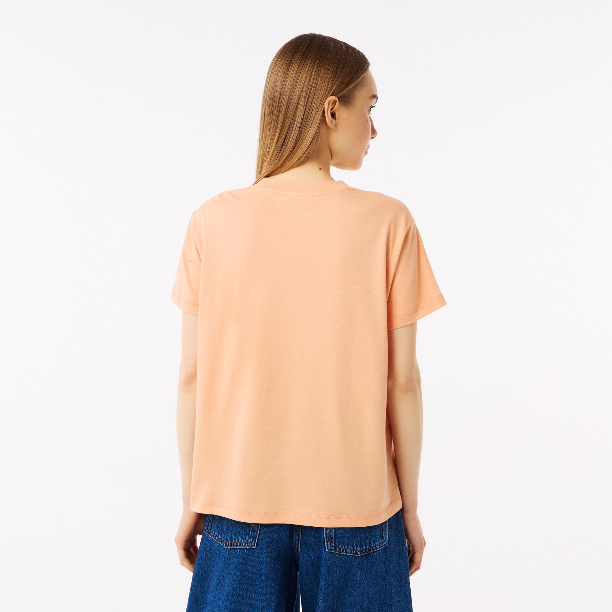 Круглый вырез\Короткие рукава\Спущенная линия плеч\Логотип в тон изделия на груди\Материал: 66% хлопок 34% полиэстер\Рост модели 174 см, размер одежды 36