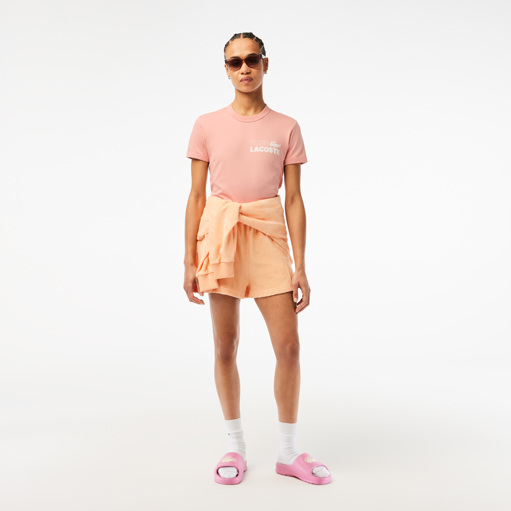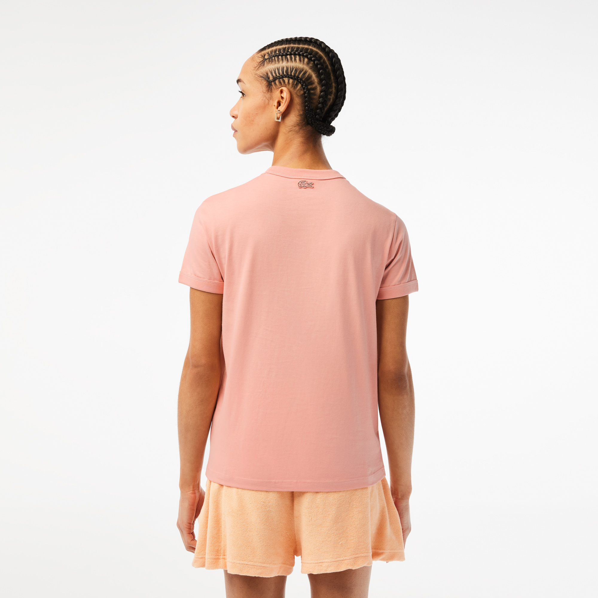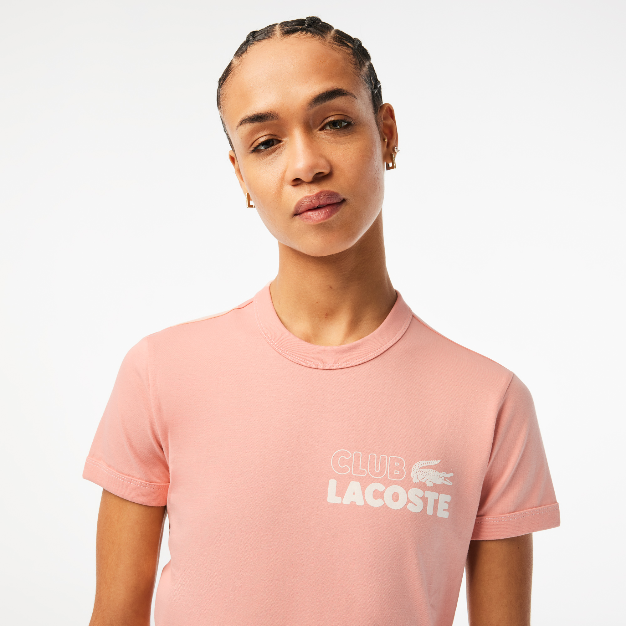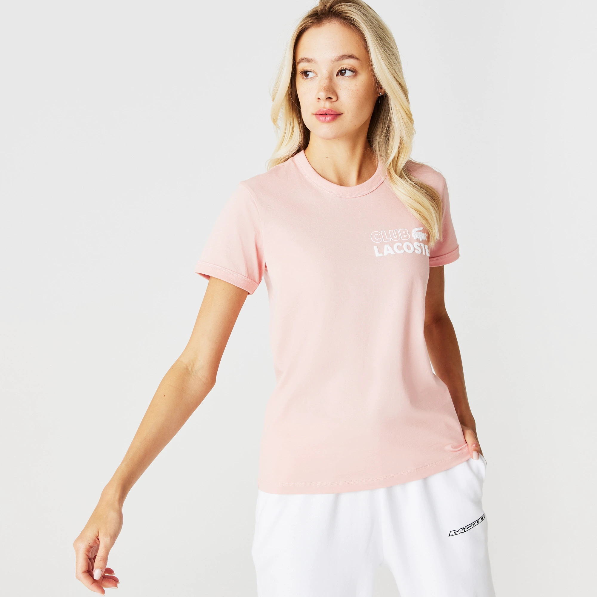 Женская Футболка Lacoste Slim Fit из органического хлопчатобумажного джерси \ Тонкий приталенный крой \ Воротник на подкладке \ Контрастная отстрочка верха \ Вышитый логотип \ Ткань из органического хлопчатобумажного джерси \ Контрастная надпись на груди