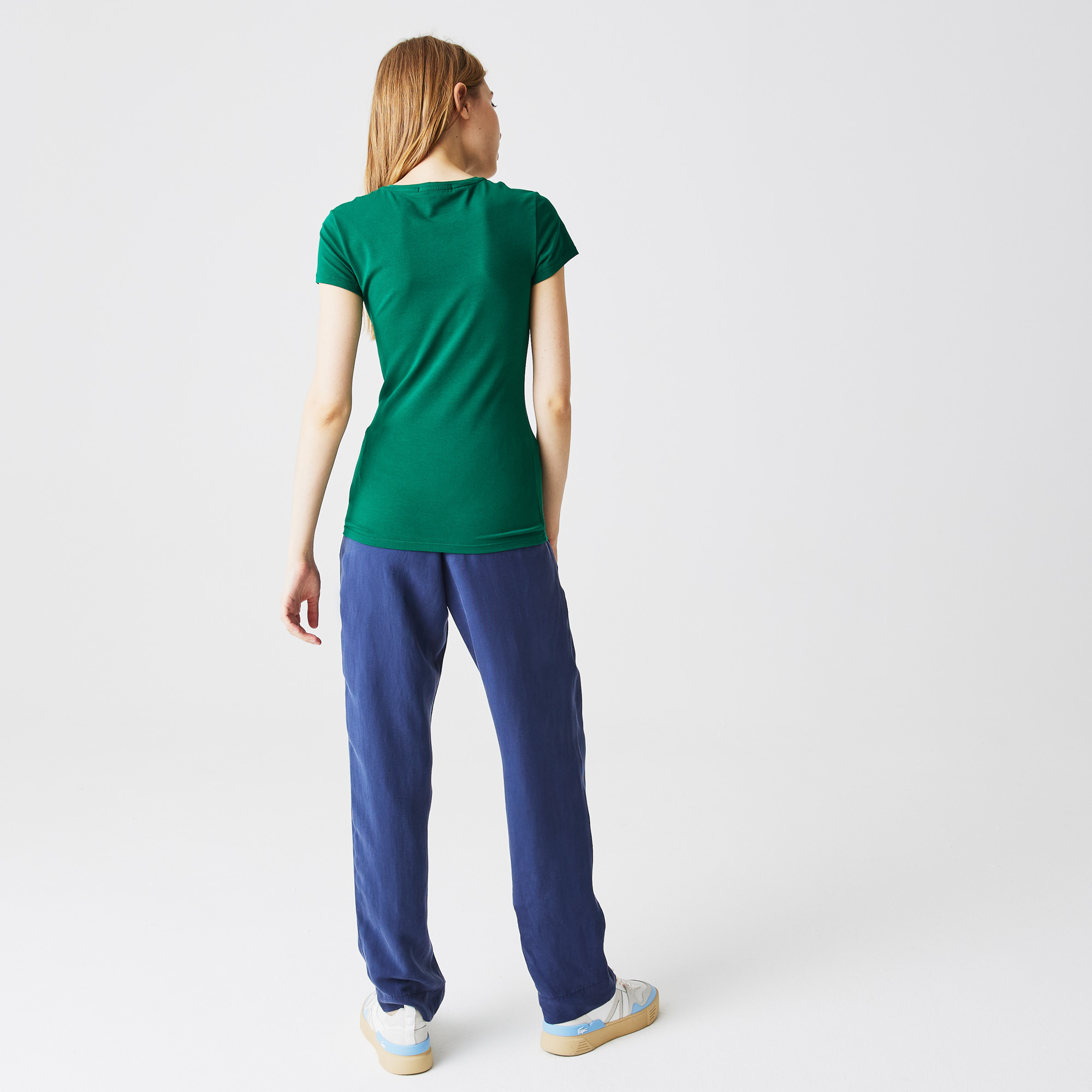 Белая классическая женская Футболка с V-образным вырезом \Материал: 94% хлопок, 6% эластан \